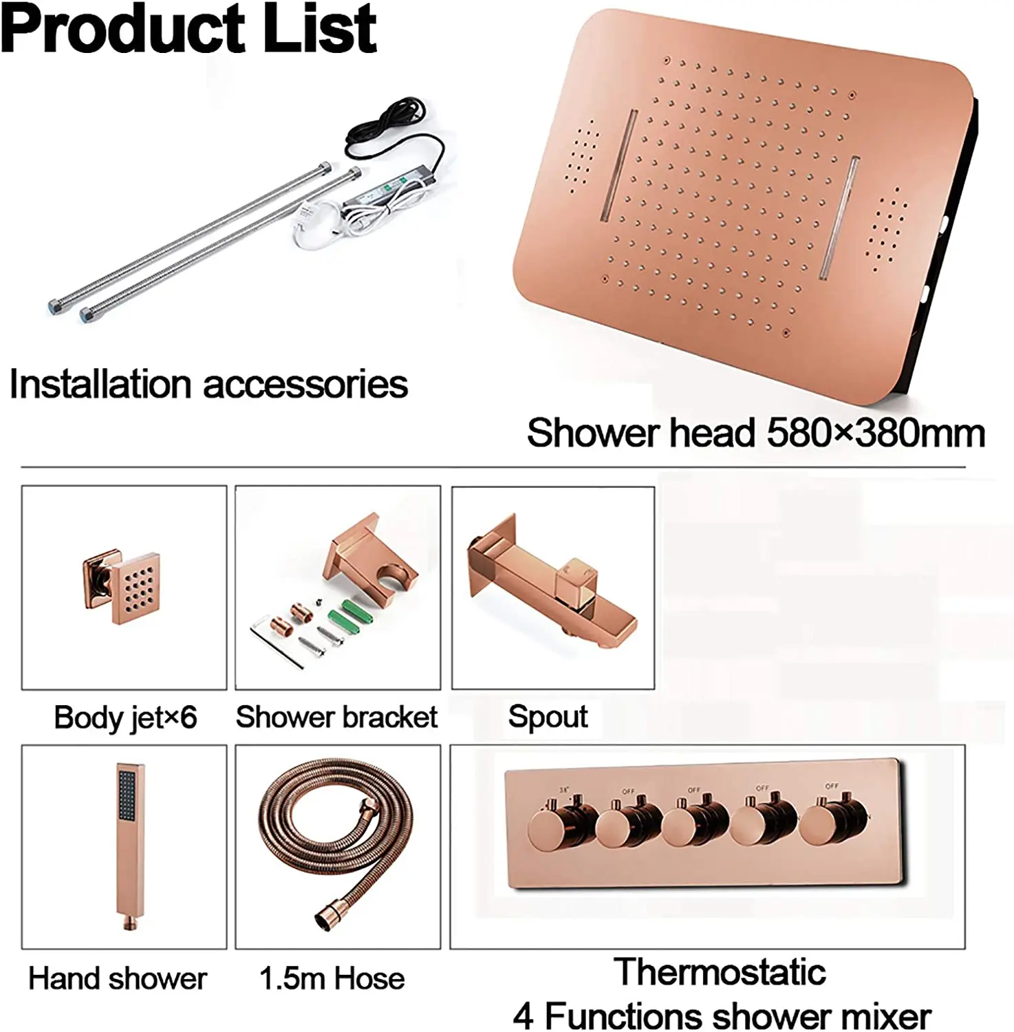 Music Shower System LED Shower Combo Set Thermostatic Bathroom Shower Faucet Set Rose Gold Bluetooth Smart Musical Shower Set