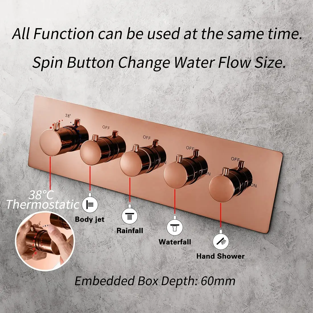 Music Shower System LED Shower Combo Set Thermostatic Bathroom Shower Faucet Set Rose Gold Bluetooth Smart Musical Shower Set