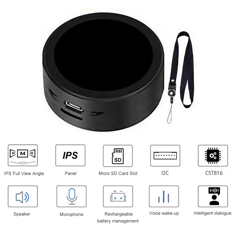 Features: 1.Versatile Functionality: Experience three major functions in one purchase, featuring the small genius AI chat robot for development board. Engage in interactive voice, button, and touch wake-ups. 2.SD Playback Capabilities: Enjoy seamless local video playback in MJPEG format and MP3 music without programming. Simply copy files to your SD card and insert into the AI voice chat box. 3.WIFI Weather Clock: Synchronize time and weather info worldwide with ease. Display real-time temperature and humidity via deepseek robot chat box animated astronaut interface. 4.Firmware Updates: Easily download and update firmware like ESP32-S3-1.28-BOX-Touch-Clock for the round development board models for enhanced functionality. 5.Network Connection Setup: Auto-connect to mobile hotspots for seamless integration. Use your device’s network as a mini TV desktop trinket robot.Specification: Origin: Mainland China Color: Black Processor: ESP32-S3 Wi-Fi: 2.4GHz Wi-Fi Interface: Type-C Product Size: 45 x 22mm / 1.77 x 0.87 inches Packaging Dimensions: 100 x 70 x 55mm / 3.9 x 2.73 x 2.15 inches Weight: 52g Note: