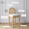 Nathan James Bailey Rattan Counter Height Bar Stool in Oak Finish Frame, with Woven Back and Upholstered Boucle Seat for Kitchen Island, Brown