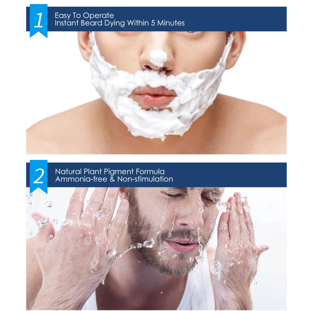 2.Easy to operate for instant hair coloring, no need to blend with water, just squeeze the shampoo on dry beard and rub for a few minutes to make foam.