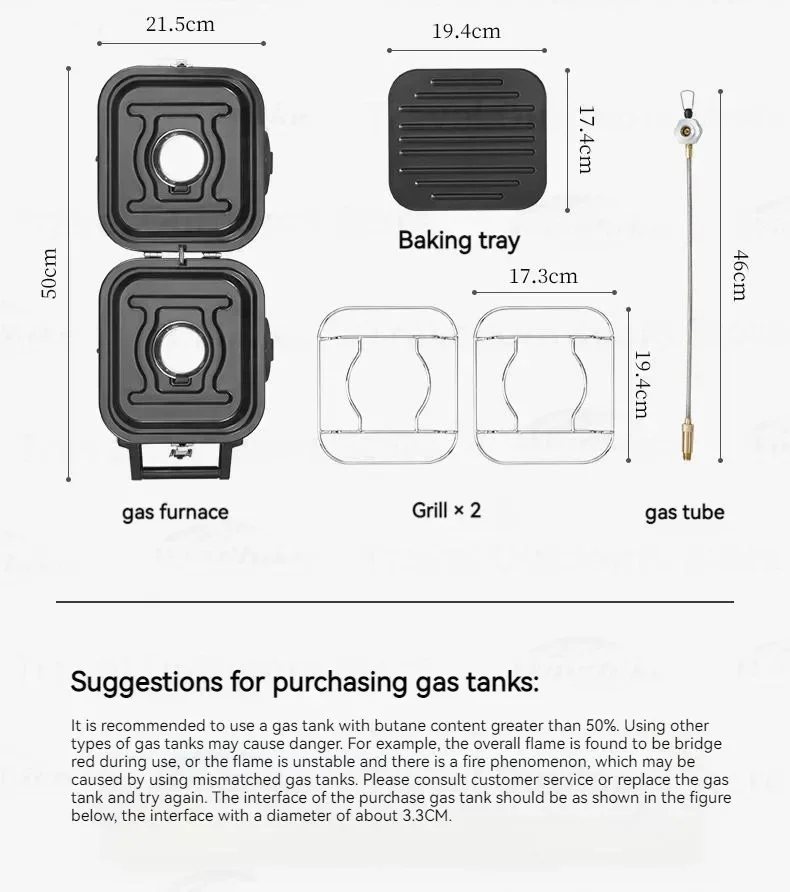 ProductList: Gas Stove / Barbecue Rack*2 / Baking Tray / Gas Pipe