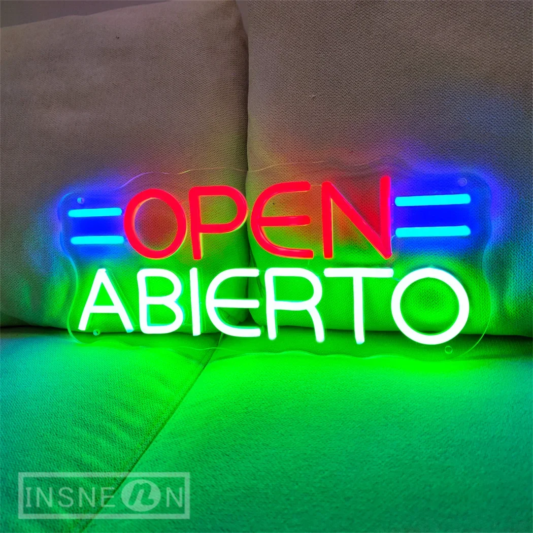 Neon LED Sign Open Abierto Spanish Neon Signs for Coffee Shop Studio Room Wall Decor Disco Club Bar Restaurant Neon Sign Light