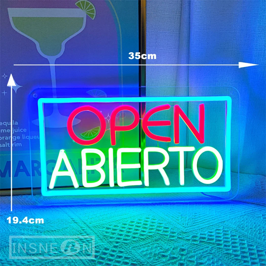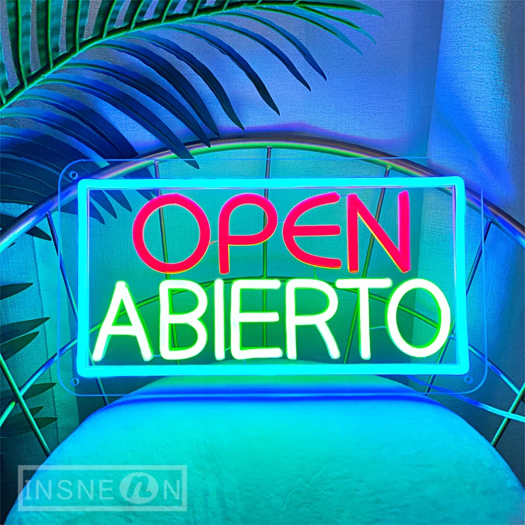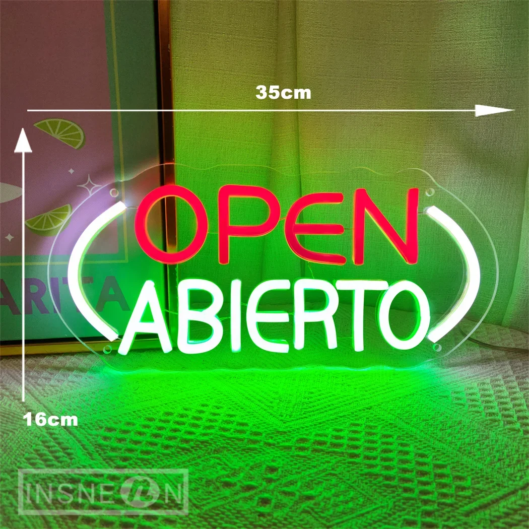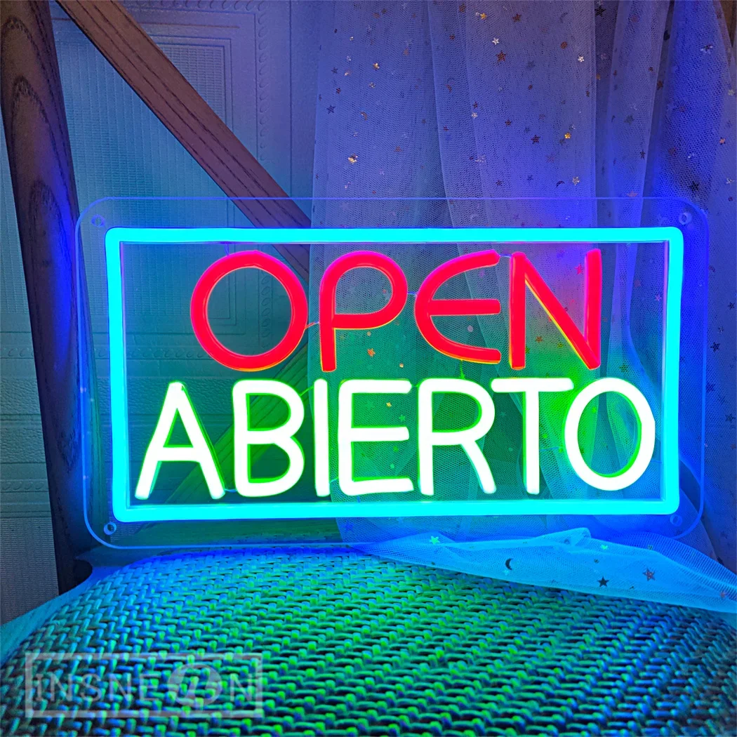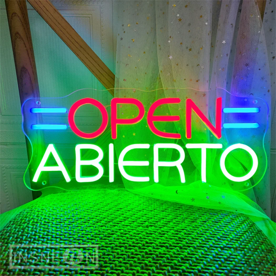 Neon LED Sign Open Abierto Spanish Neon Signs for Coffee Shop Studio Room Wall Decor Disco Club Bar Restaurant Neon Sign Light