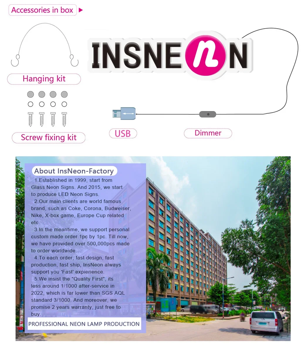 Our factory support customization, you could leave us messages online, or by email ae@insneon.com, or +8617755612168(Whats app & We chat).