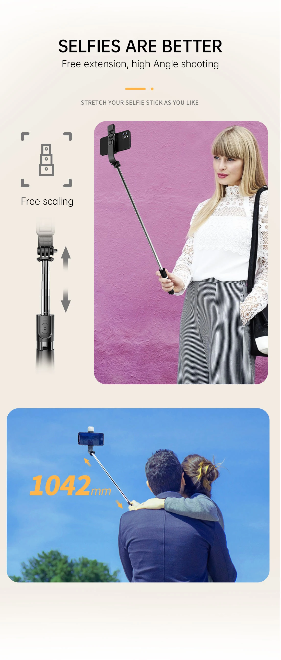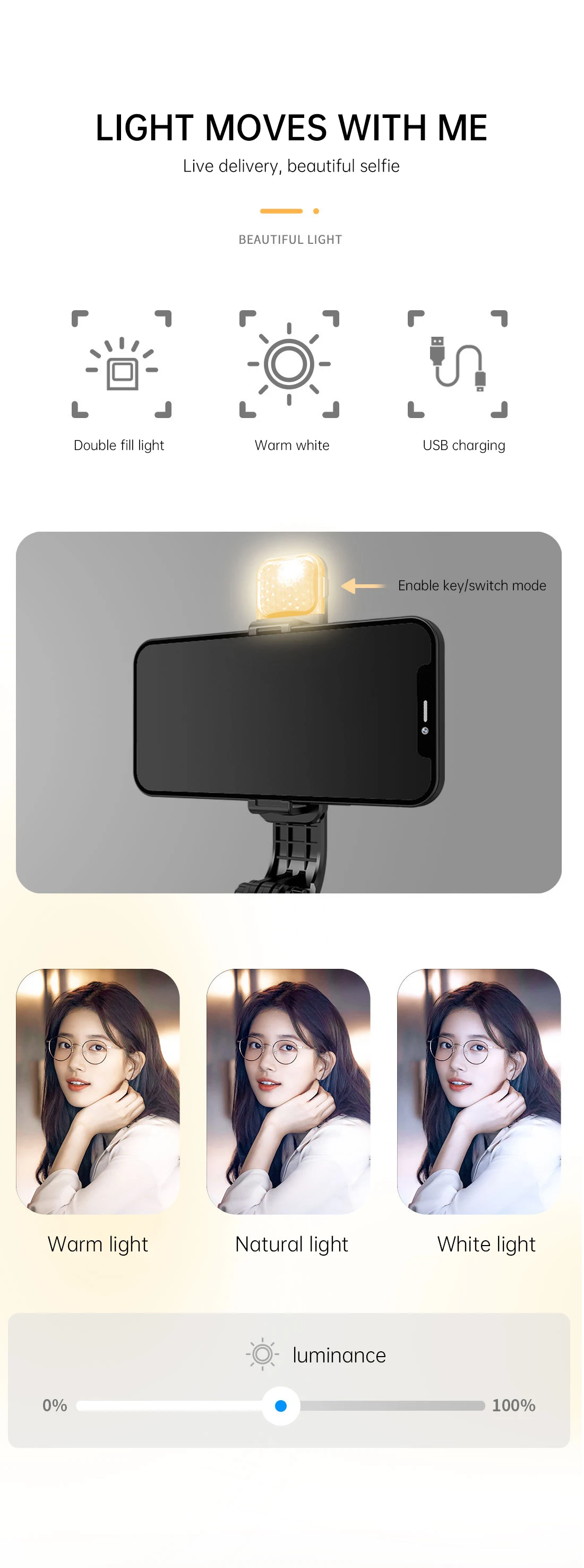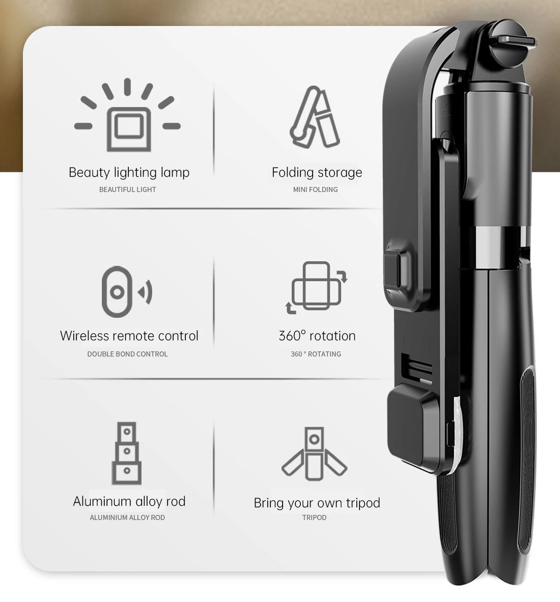 New 3 In 1 Wireless Selfie Tripod With Fill Light Bluetooth Shutter Remote Control Portable Foldable Monopod For Smart Phone