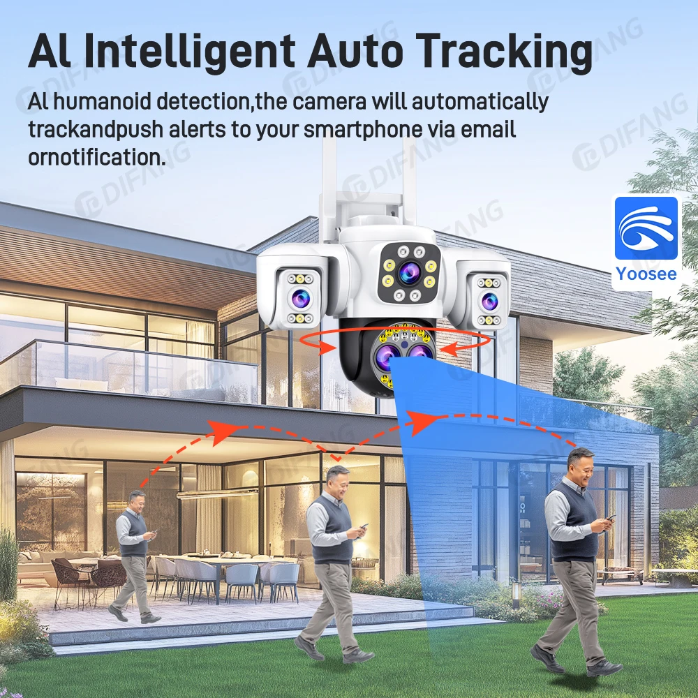 DIFANG 8K WiFi IP Camera Outdoor Three Screen CCTV Security Protection 10X Zoom PTZ Ai Tracking Video Surveillance Yoosee