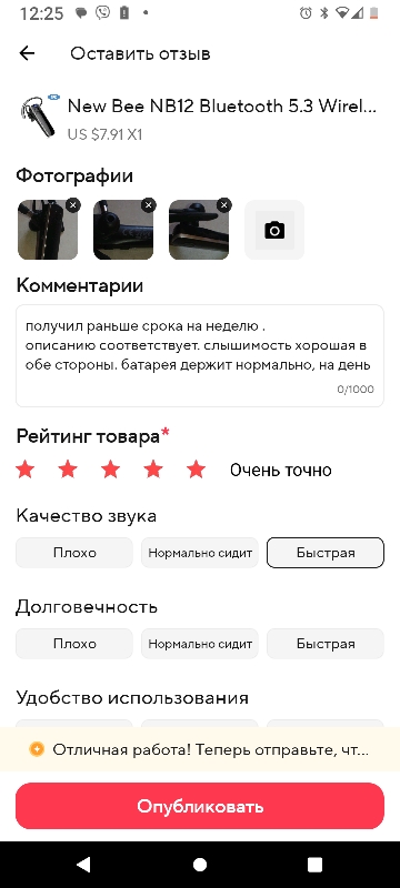 It works well, I'm satisfied. I buy it for the third time, the first was lost on delivery, the second was with a rattling speaker, and now, finally, I was lucky! I like the new Bee lc-b41 more complete sound spectrum, but they are bigger and heavier. Reliability surprised me: I drowned her in the lake, after 20 minutes I found her, dried her, and again everything works, and the microphone hears no worse, and the battery self-discharge no longer became. For nb12 walking, I really like it: light, in the ear it is not felt, you can control the volume, +-songs/audiobooks/radio stations. Recommend!
