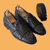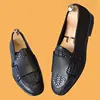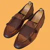 New Brown Loafers for Men Black Business Pu Leather Knit Mens Dress Shoes Handmade Size 38-48 Mocasines