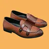 New Brown Loafers for Men Black Business Pu Leather Knit Mens Dress Shoes Handmade Size 38-48 Mocasines
