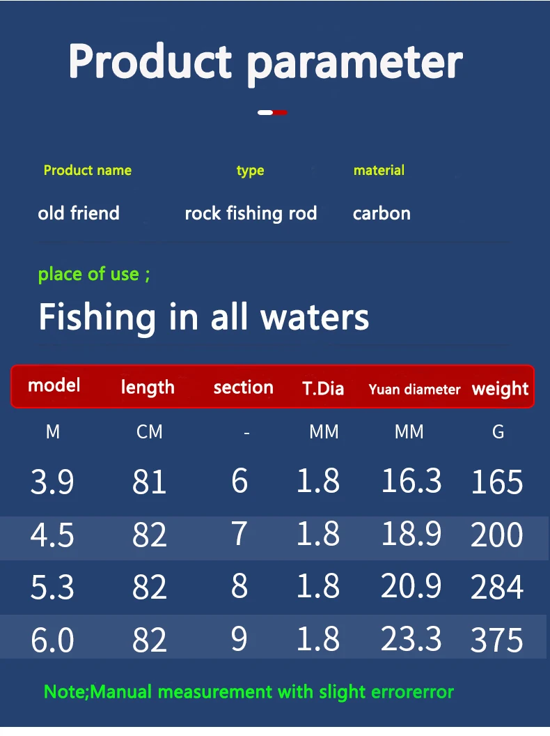 Note;Paquete incluyendo: 1 x varilla de pesca (Sin carrete)