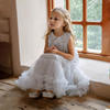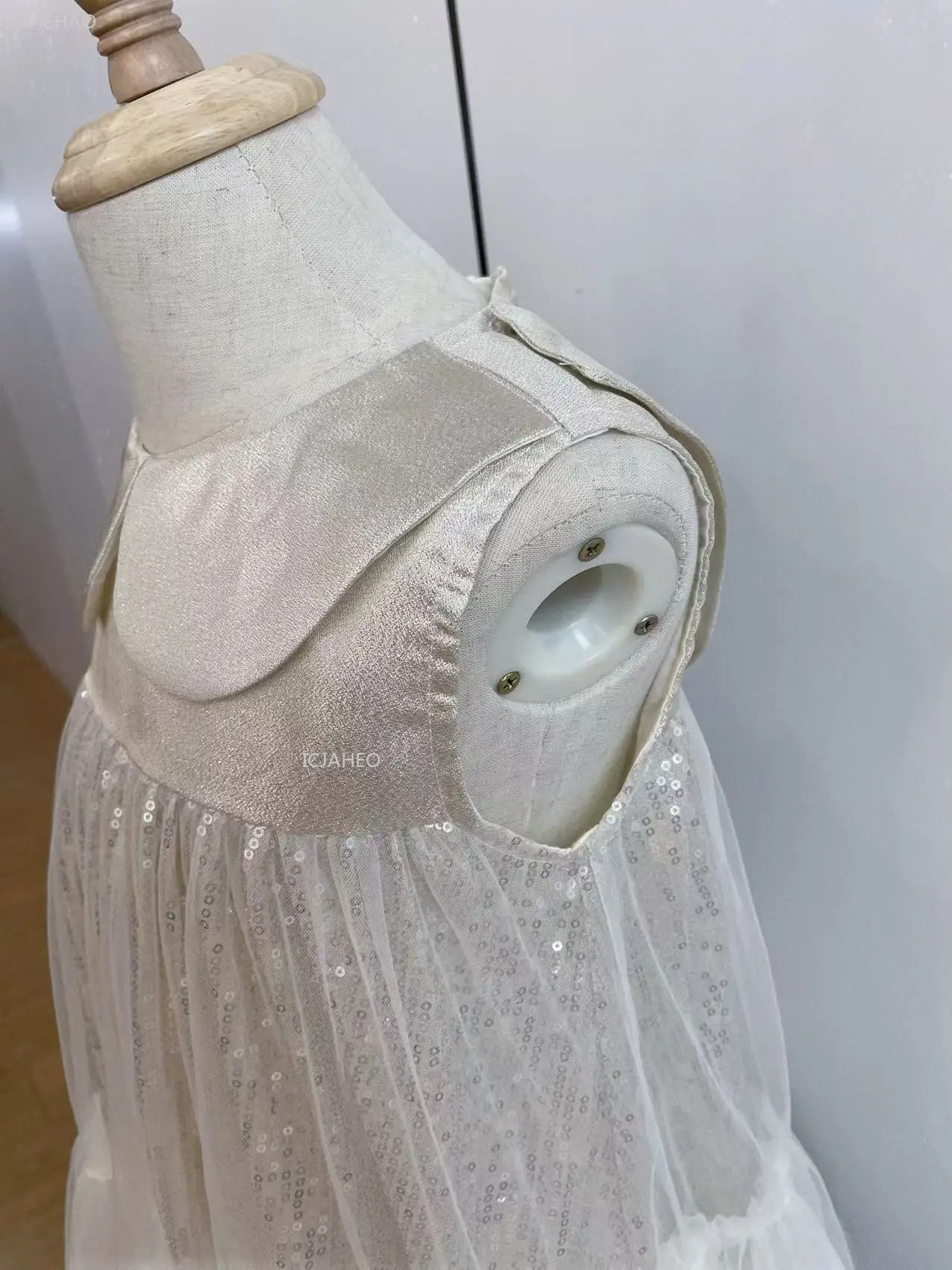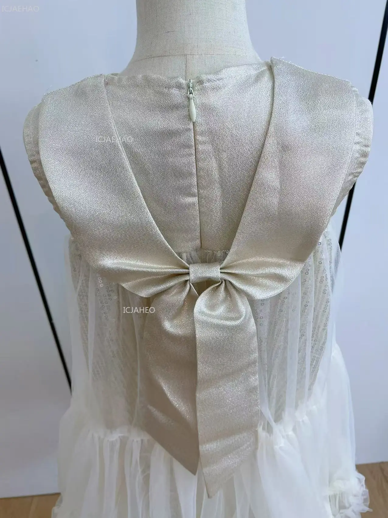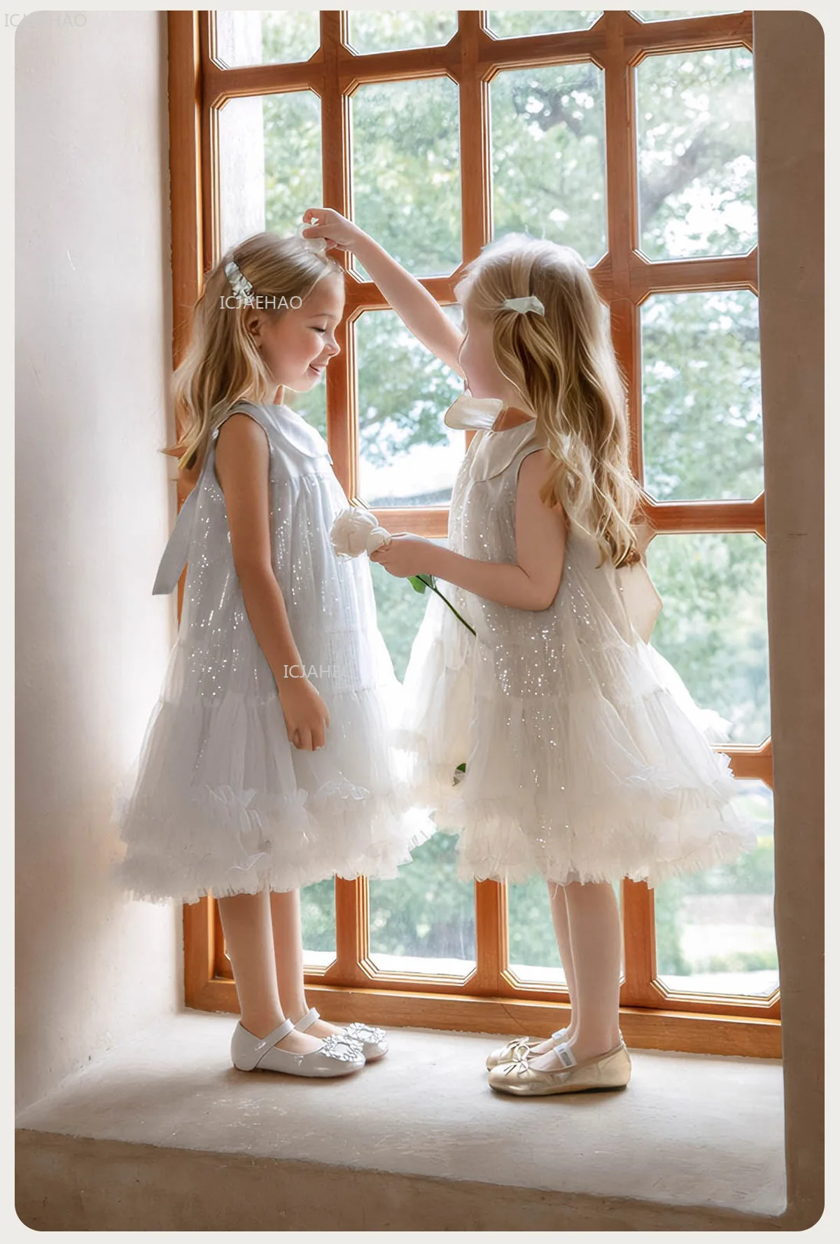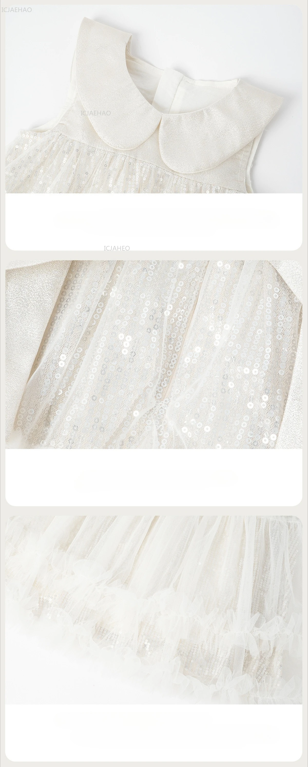 New Children Girls Party Dress Peter Pan Collar Sleeveless Tulle Princess Gown for Host Piano Performance Banquet Pageant Formal