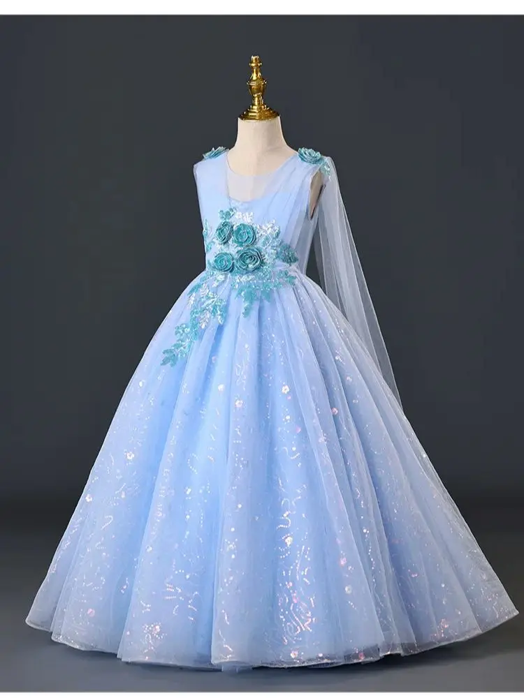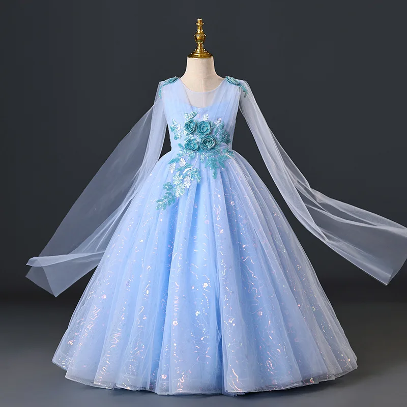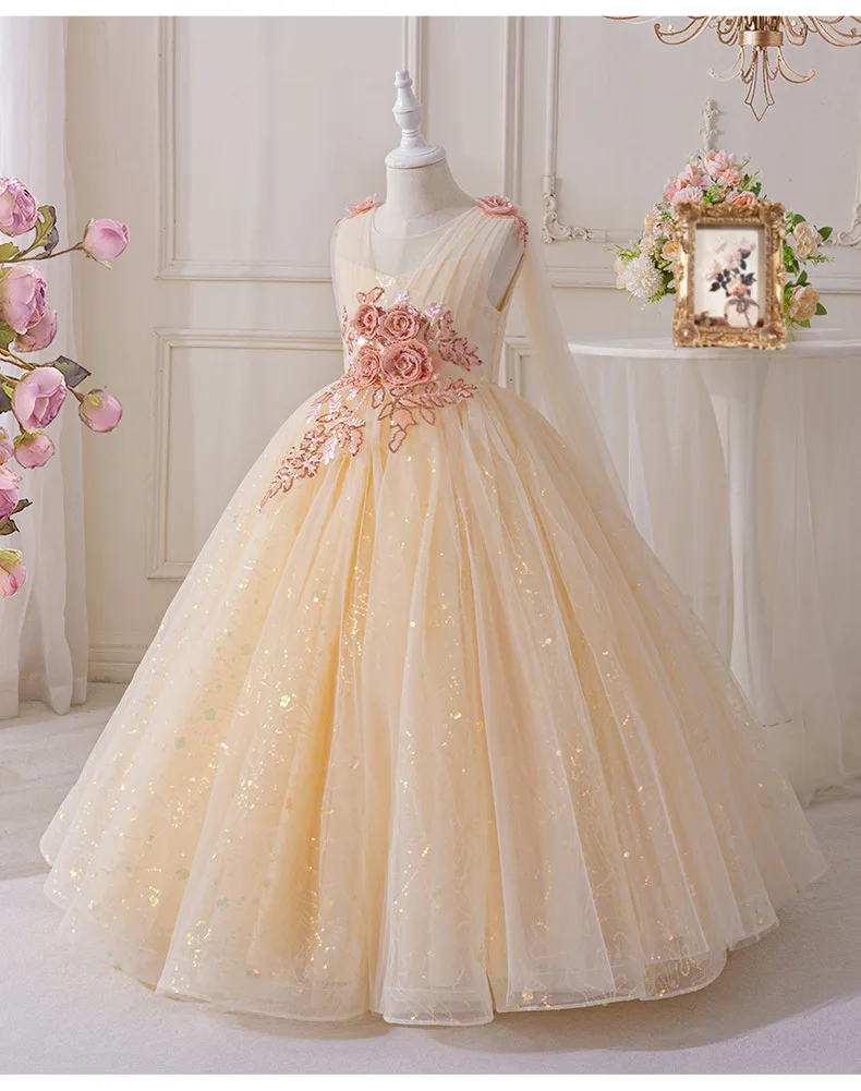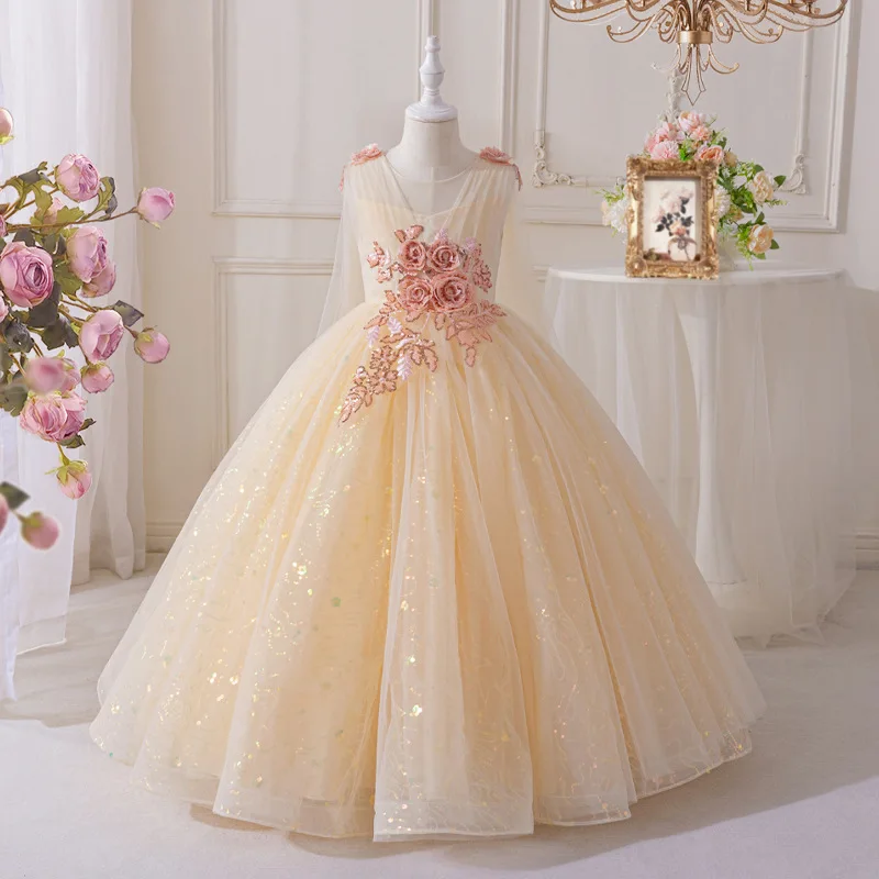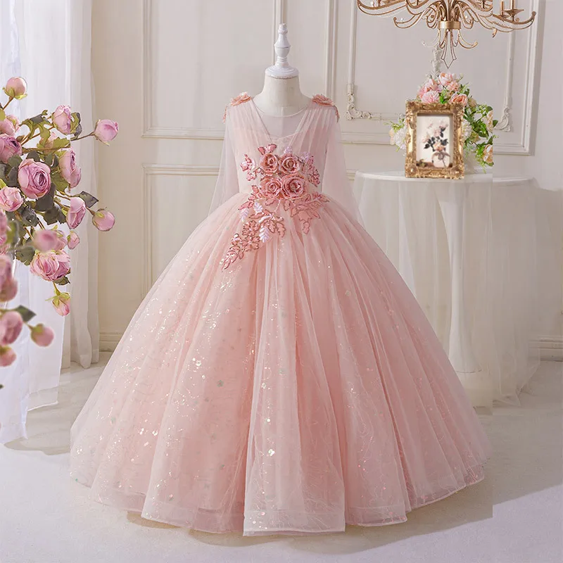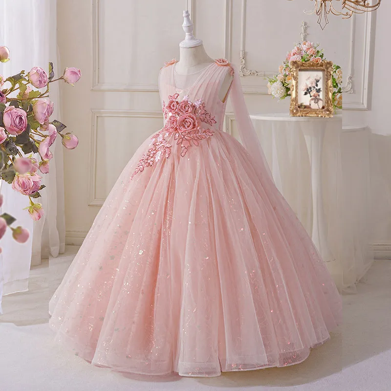 New Elegant Dress for Girls Flower Girl Long Dresses Tulle Formal Party Clothes From 4 to 12 Years
