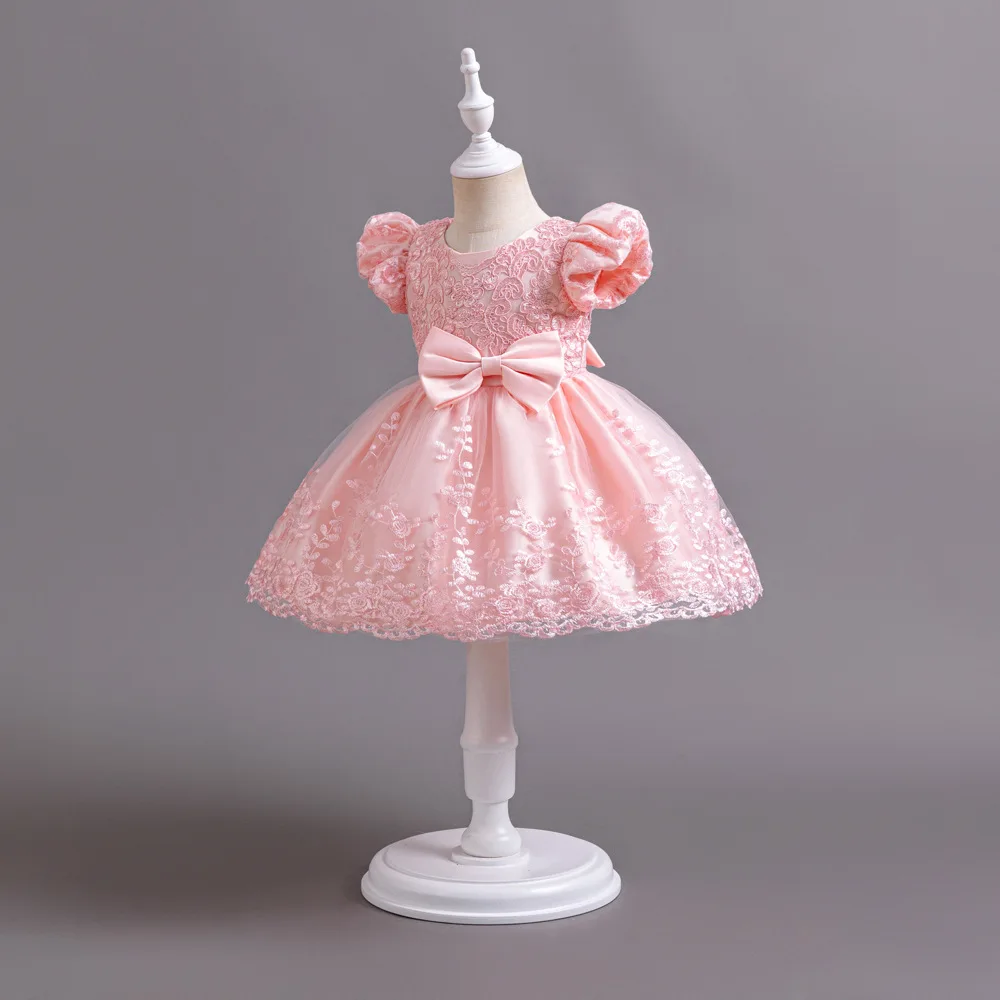 New Embroidery Dress for Girls Children’s Clothing Girls’ Party Dresses Pink Princess Clothes