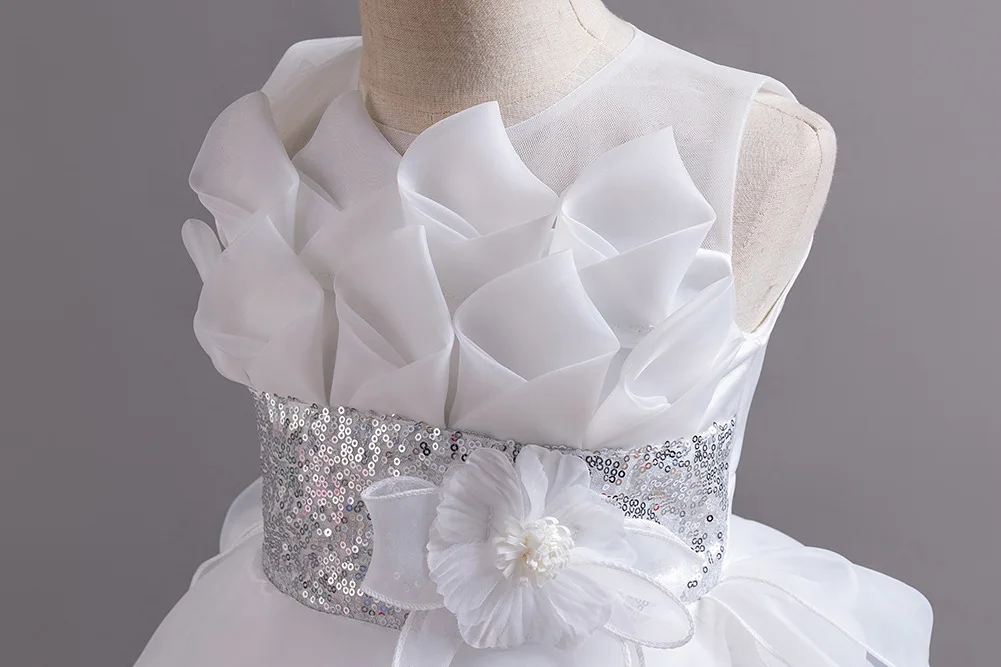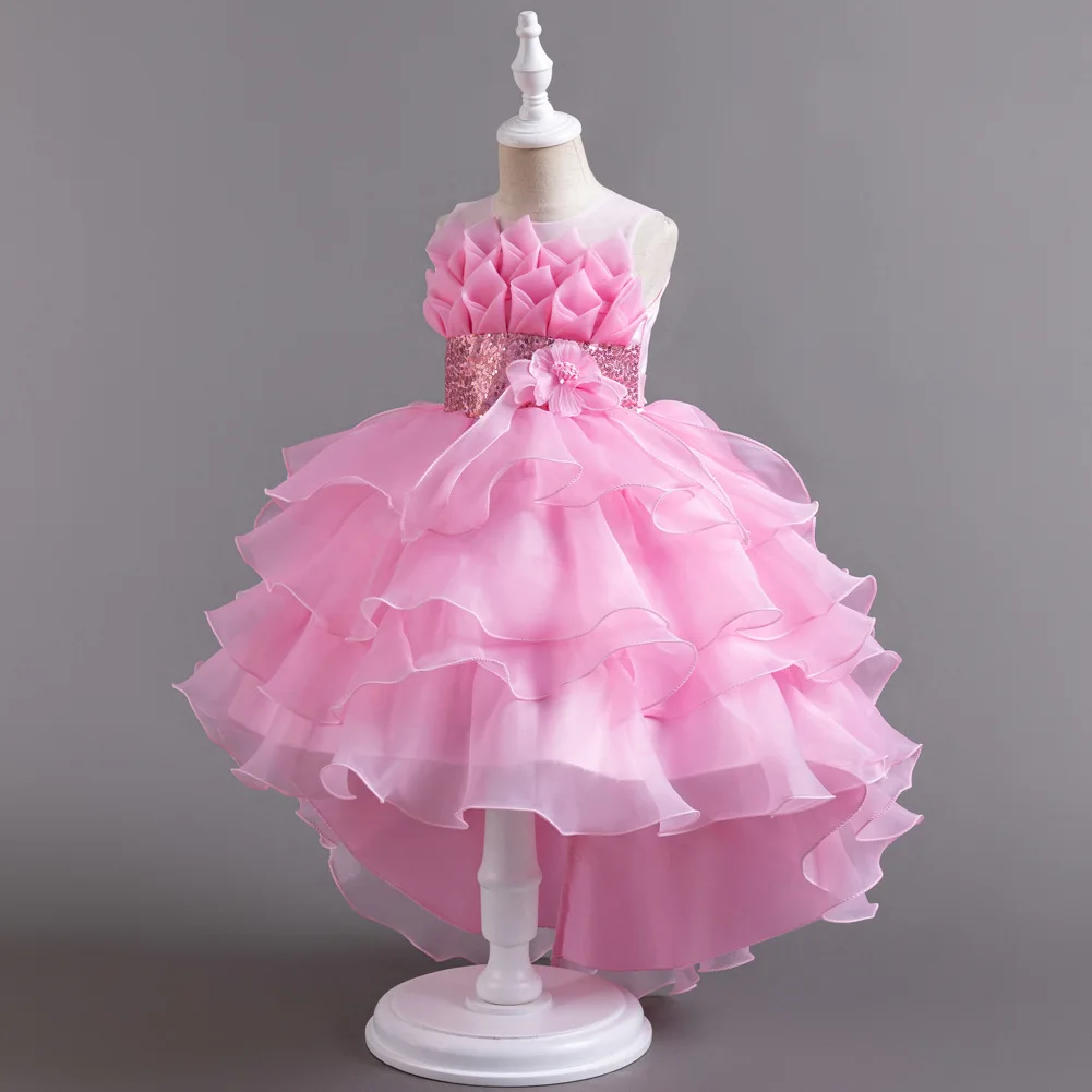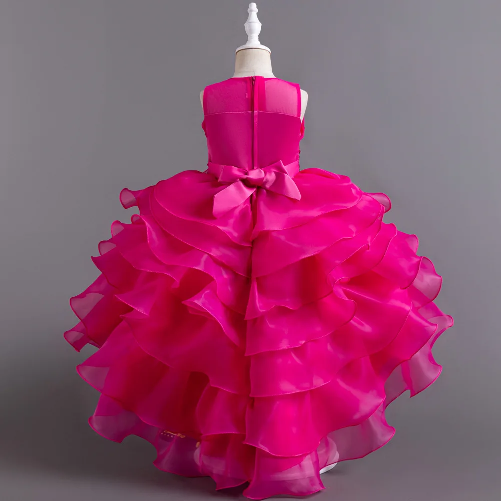 New Girls Elegant Princess Dress Embroidered Sequins Birthday Ball Evening Dress Party Fluffy Cake Dress 4-12 Years Old clothin