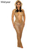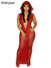New Luxury Birthday Red Hooded Dress for Women Sexy Deep V Neck Sequins Glitter Mesh See Through Back Open Sparkly Evening Robe