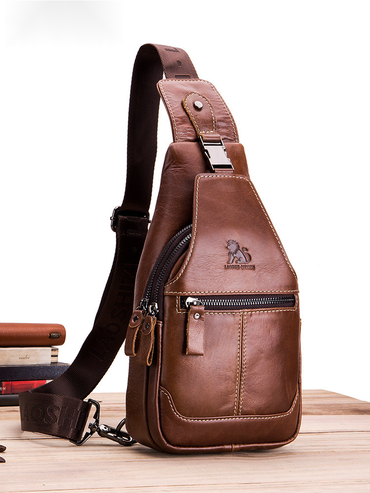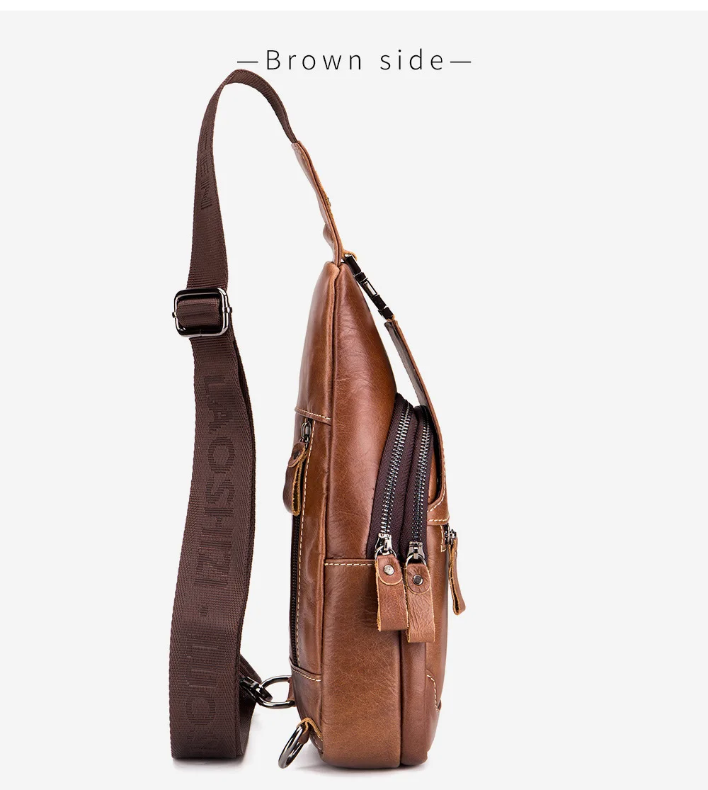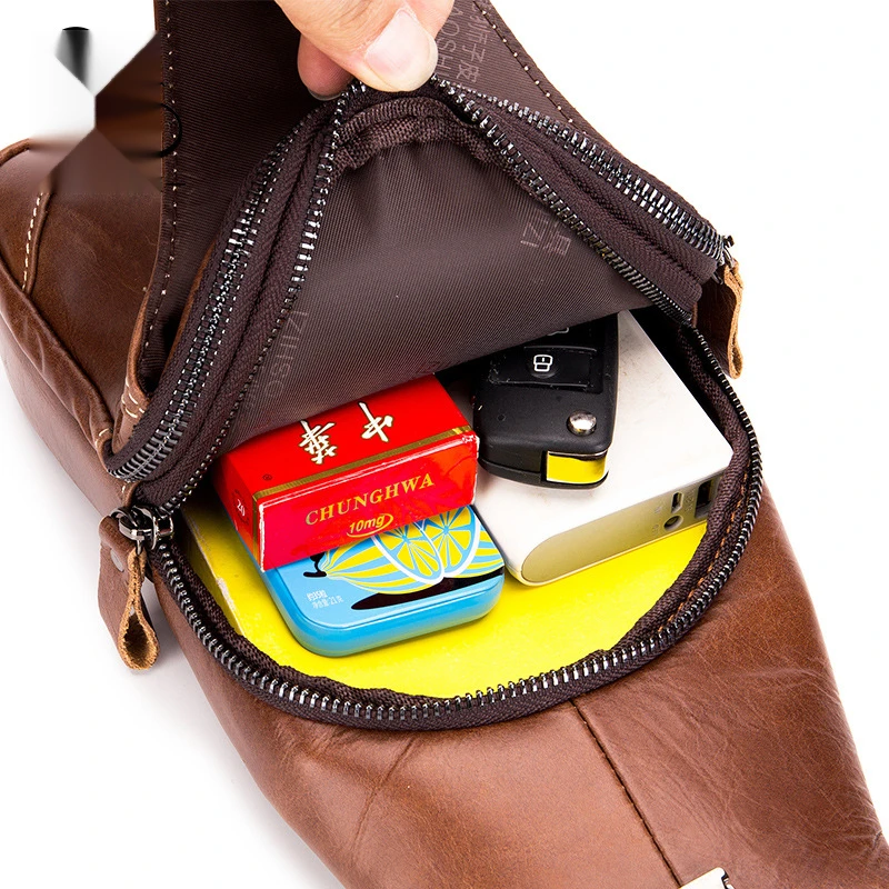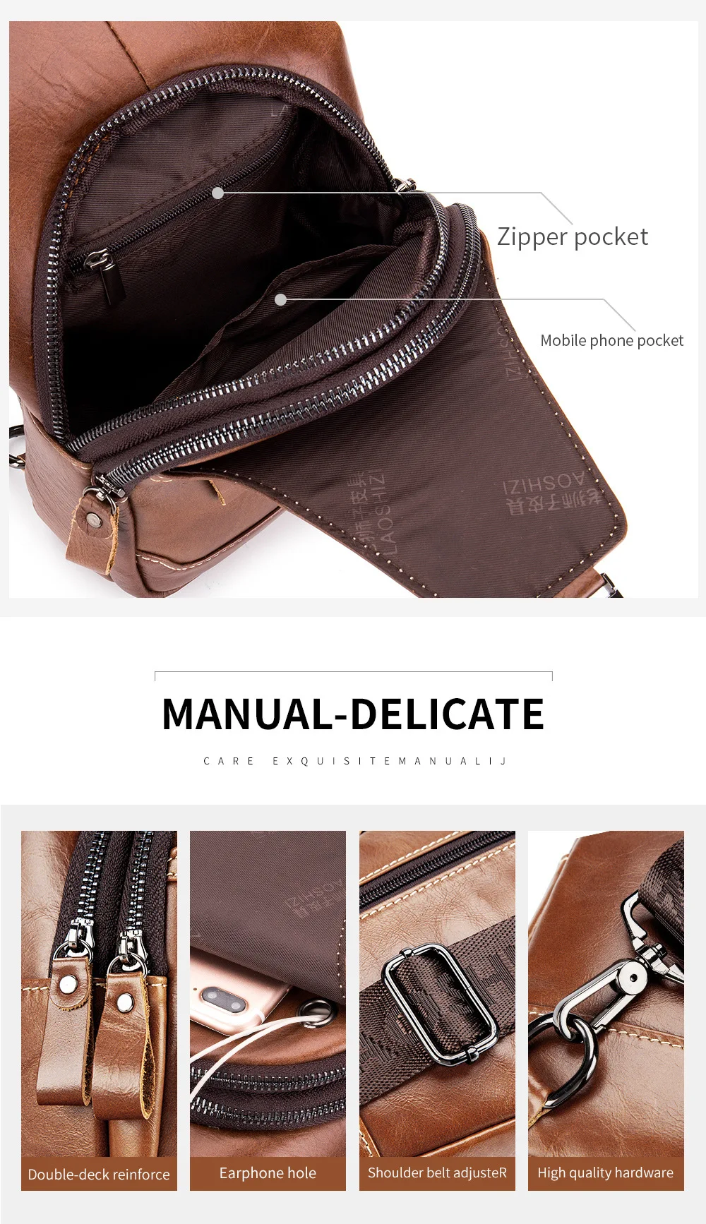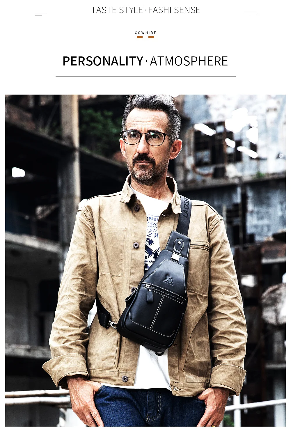 New Men’s Cow Leather Chest Bag Man Shoulder Sports Bag Casual Male Crossbody Bag For Men