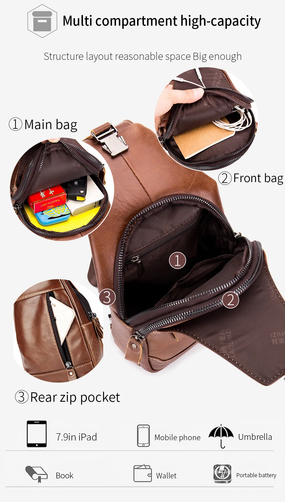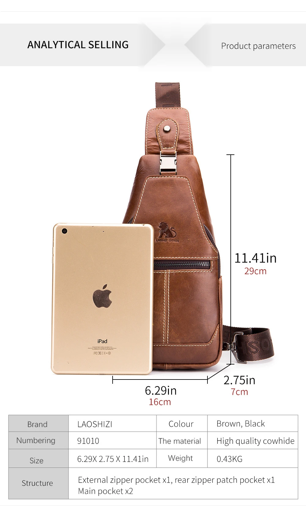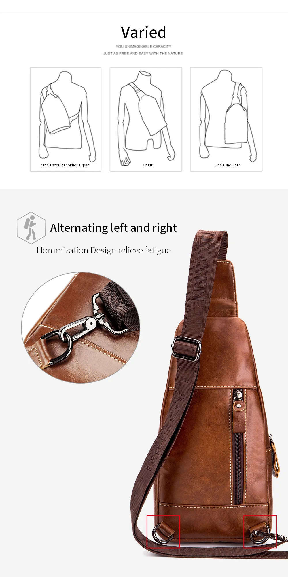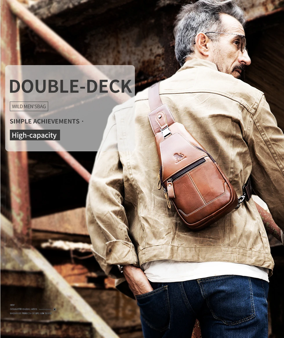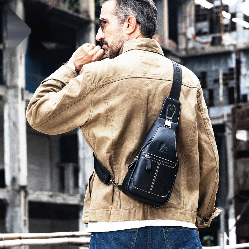 New Men’s Cow Leather Chest Bag Man Shoulder Sports Bag Casual Male Crossbody Bag For Men