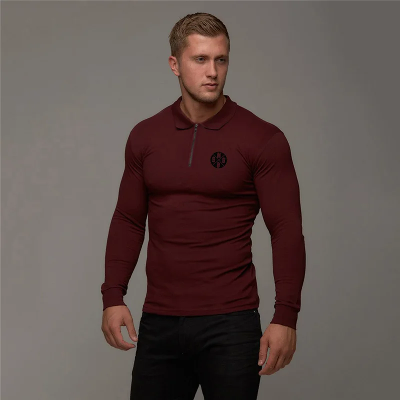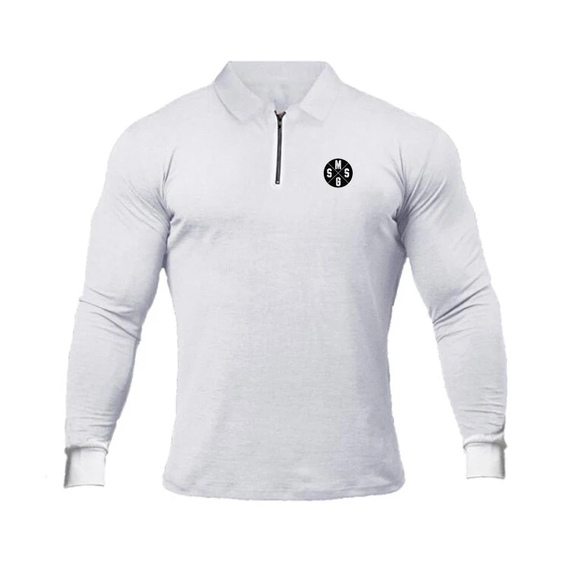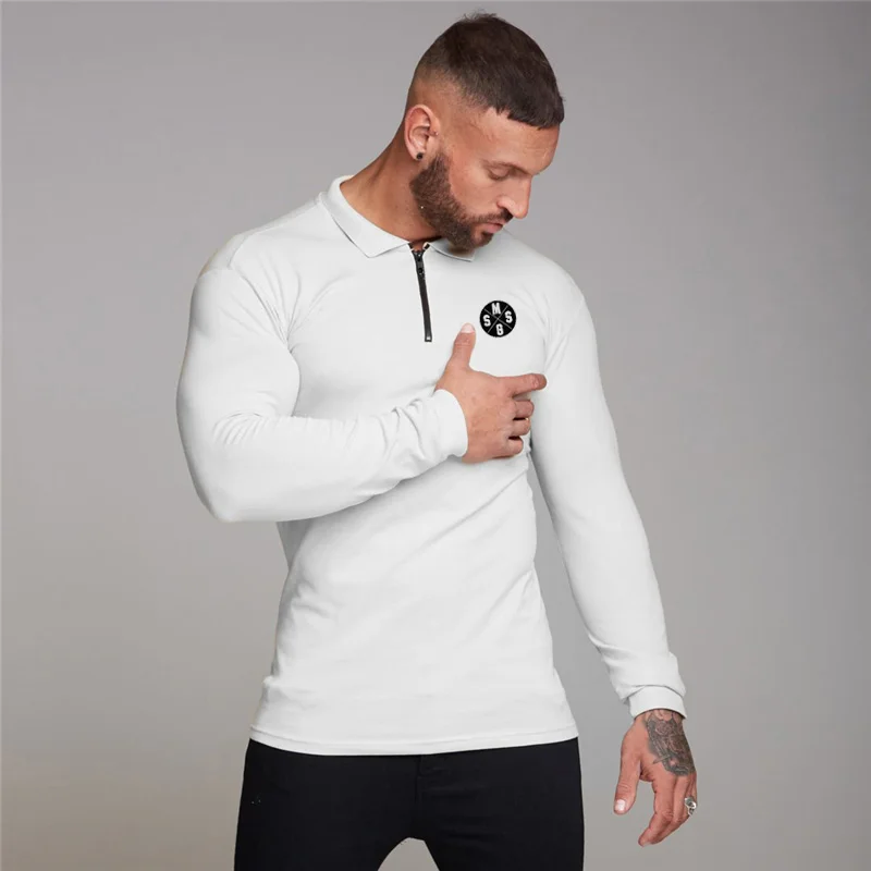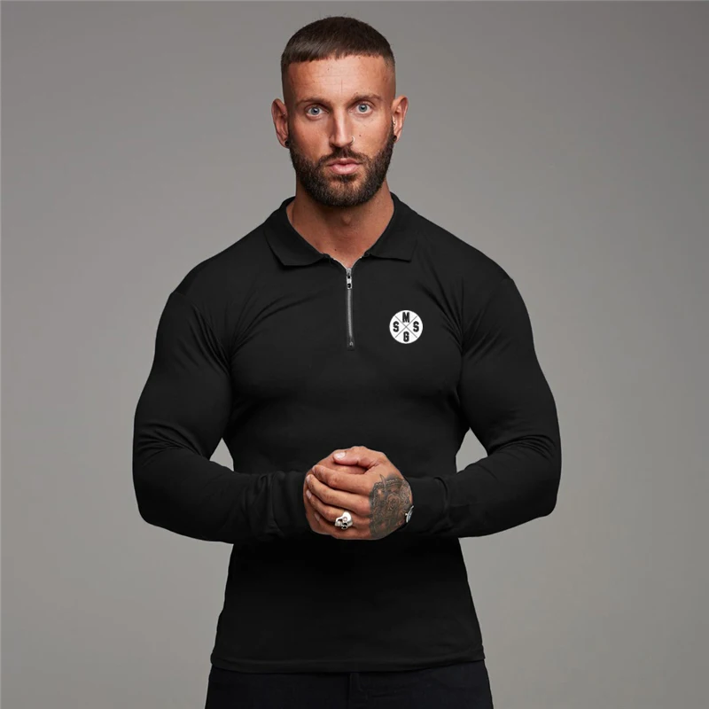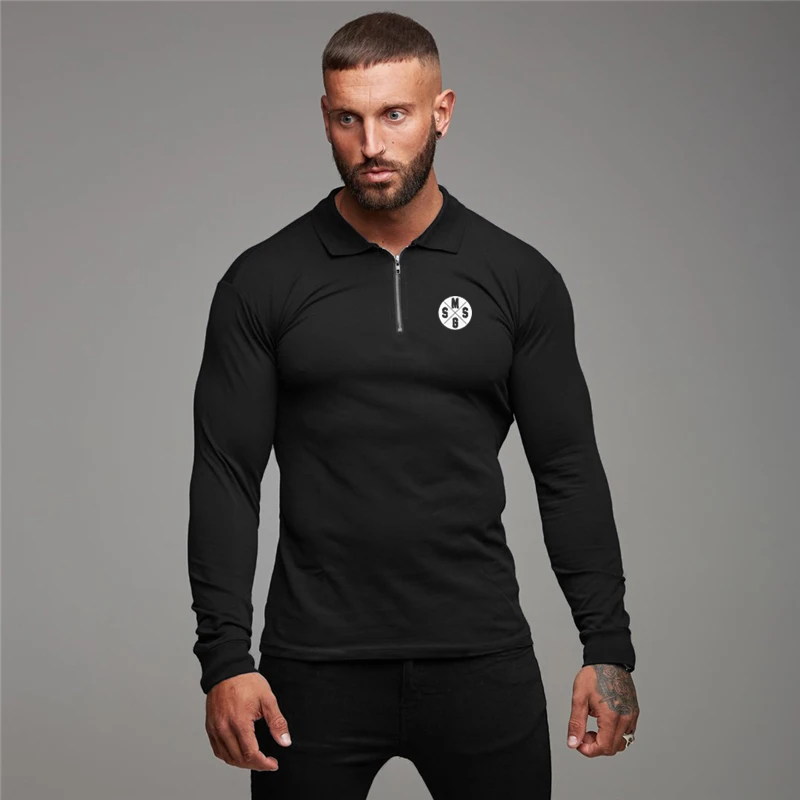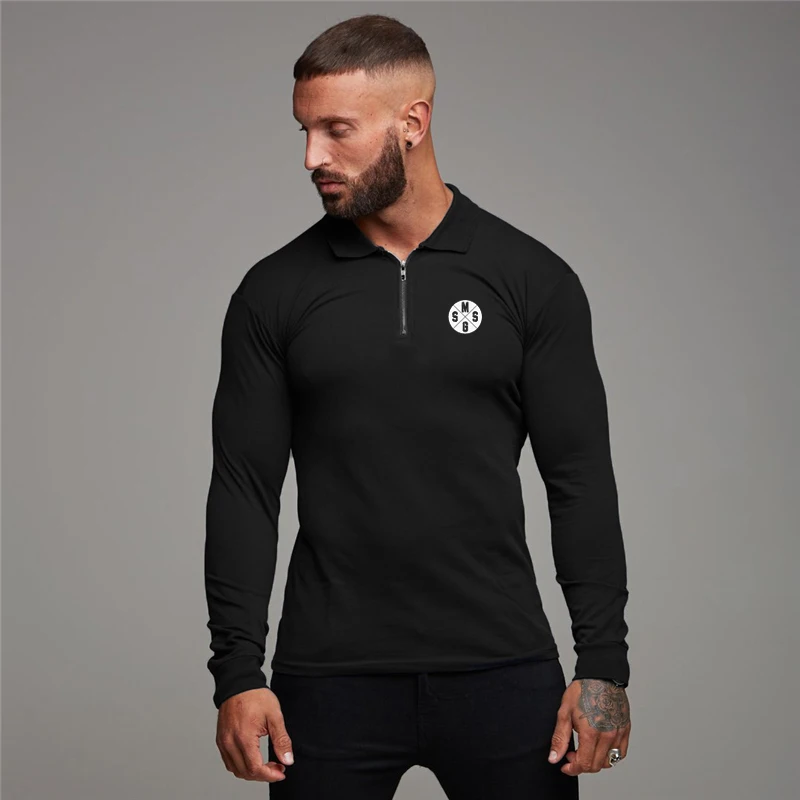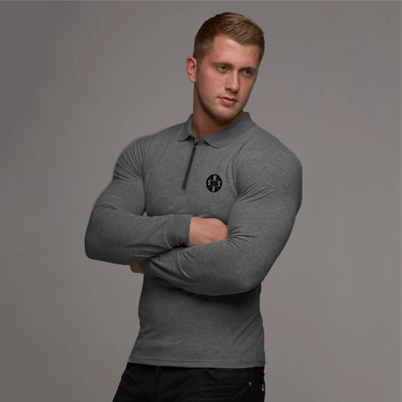 New Men’s Gyms Fashion Clothing Workout Casual Polo Shirts Sports Long Sleeve Sporting Fitness Zipper Shirt