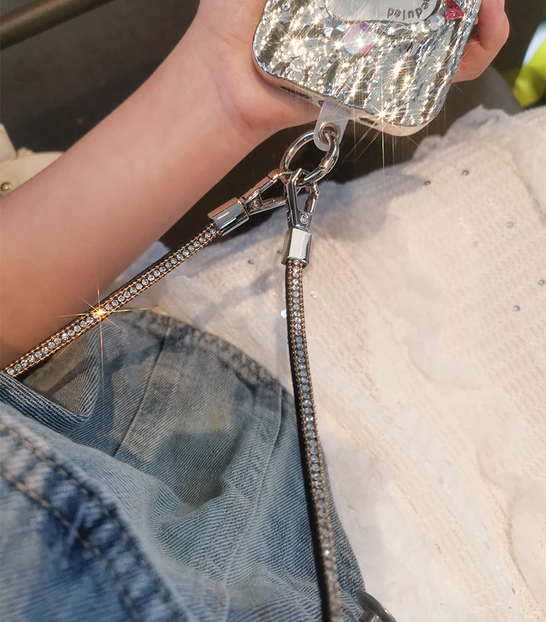 New Rhinestone Crossbody Mobile Phone Lanyard Neck Strap Anti-Lost Chain Rope With Universal Clip Cell Phone Case Trend Pendant![]()