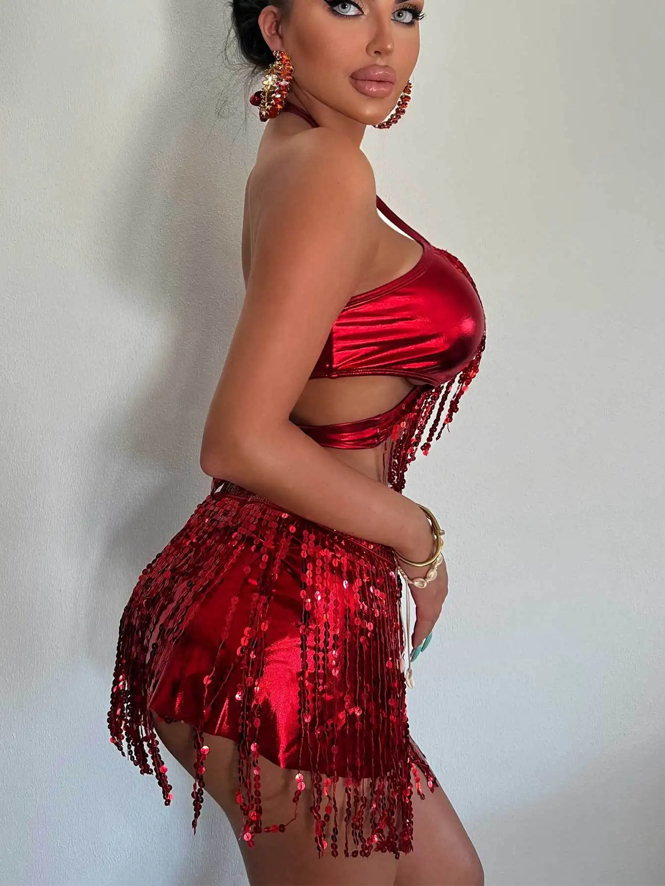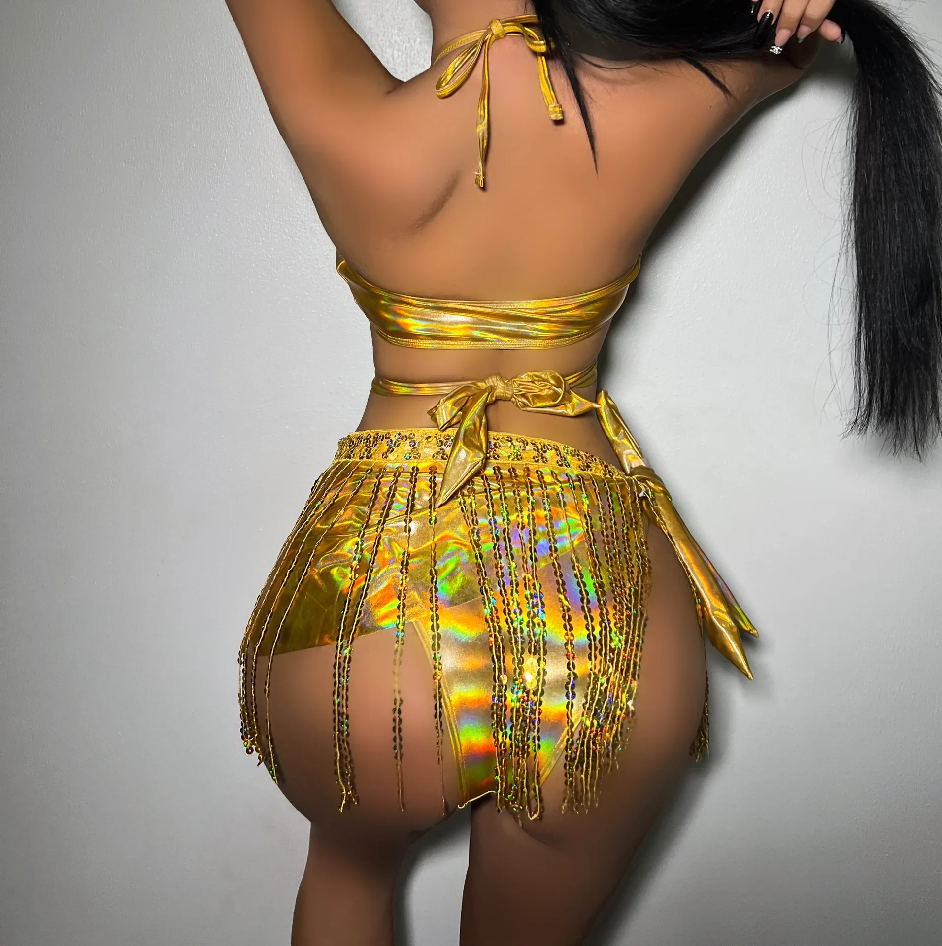 New Style Shiny Sexy Bikini Backless Color Bathing Suit