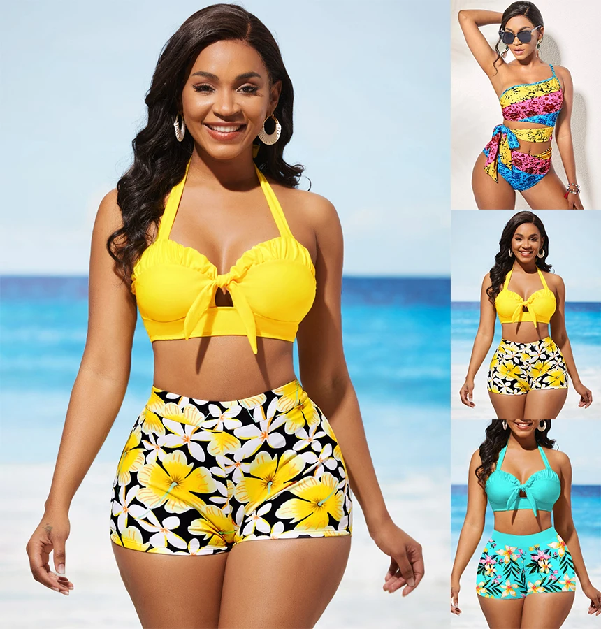 New Summer High Quality Eggflower Print Two Piece Swimsuit Design Sexy Women’s Lace Up Beach Swimsuit S-5XL