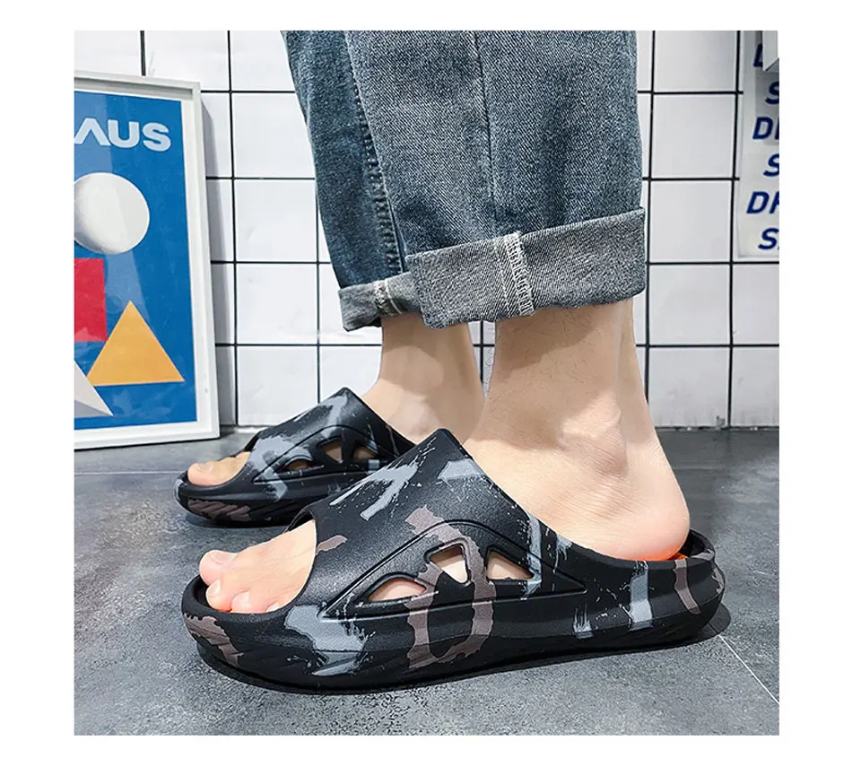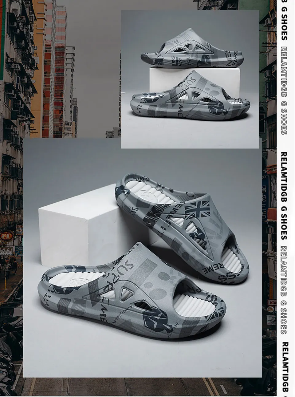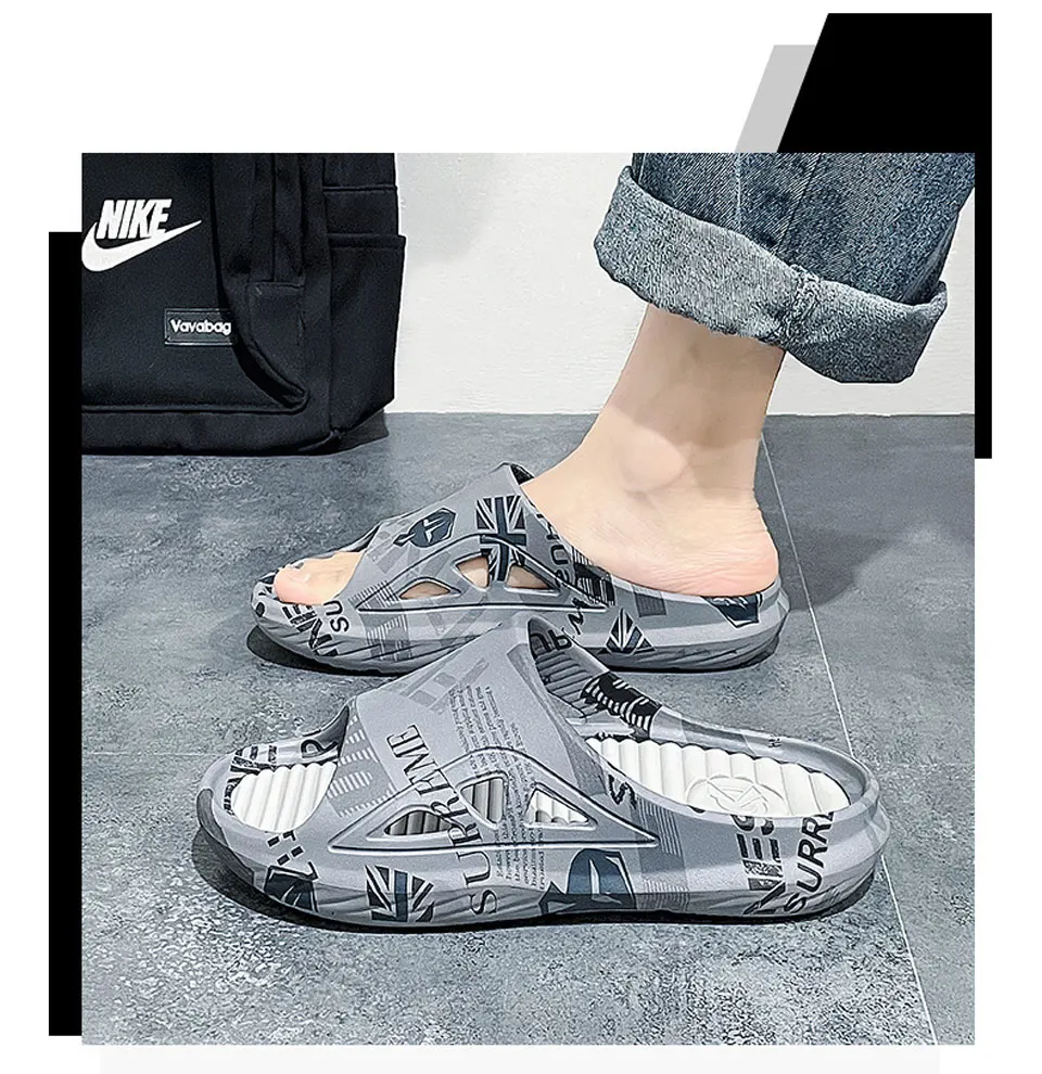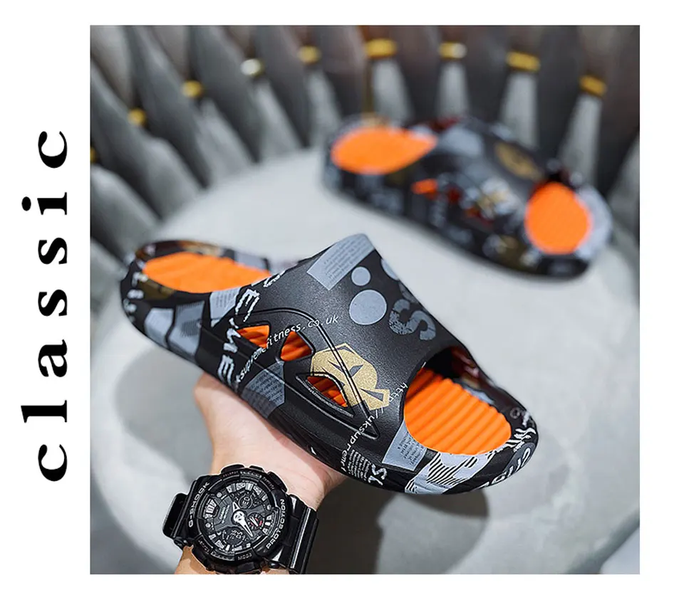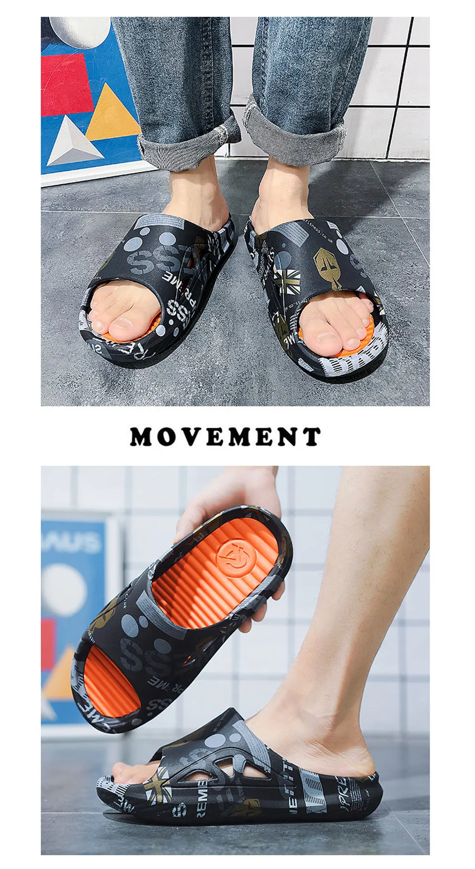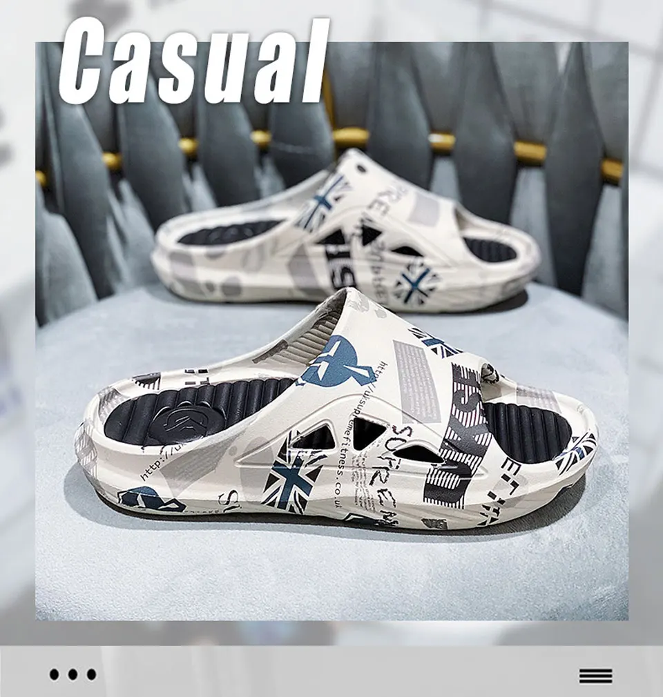 New Summer Men Fashion Slippers Outside Male Beach Slides Shoes Soft Comfortable Mens Print Slippers Casual Massage Shoes 37-46