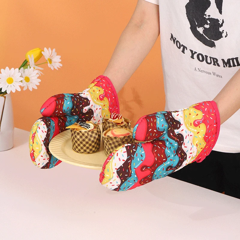 New Watermelon Ice Cream Pattern Insulated Glove Mat Microwave Oven High Temperature Resistant Glove Anti-scalding Anti-slip Mat