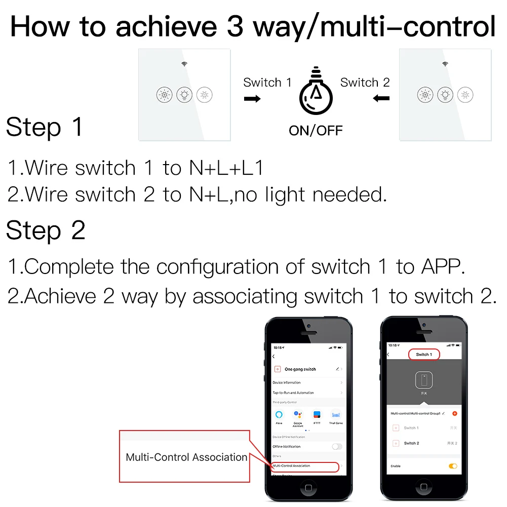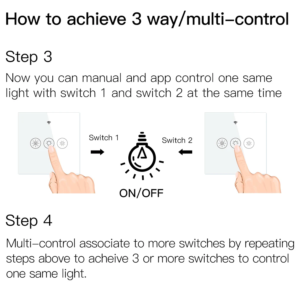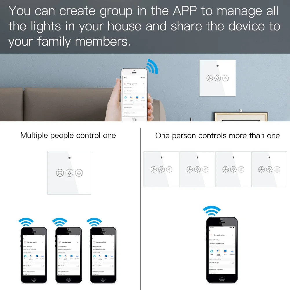 2.Non-interference control mode; allows the switch to be controlled via Smart Life, touch control, voice, and remote with RF433 frequency and 1527 encoding remote switch(not included); each control method works independently;