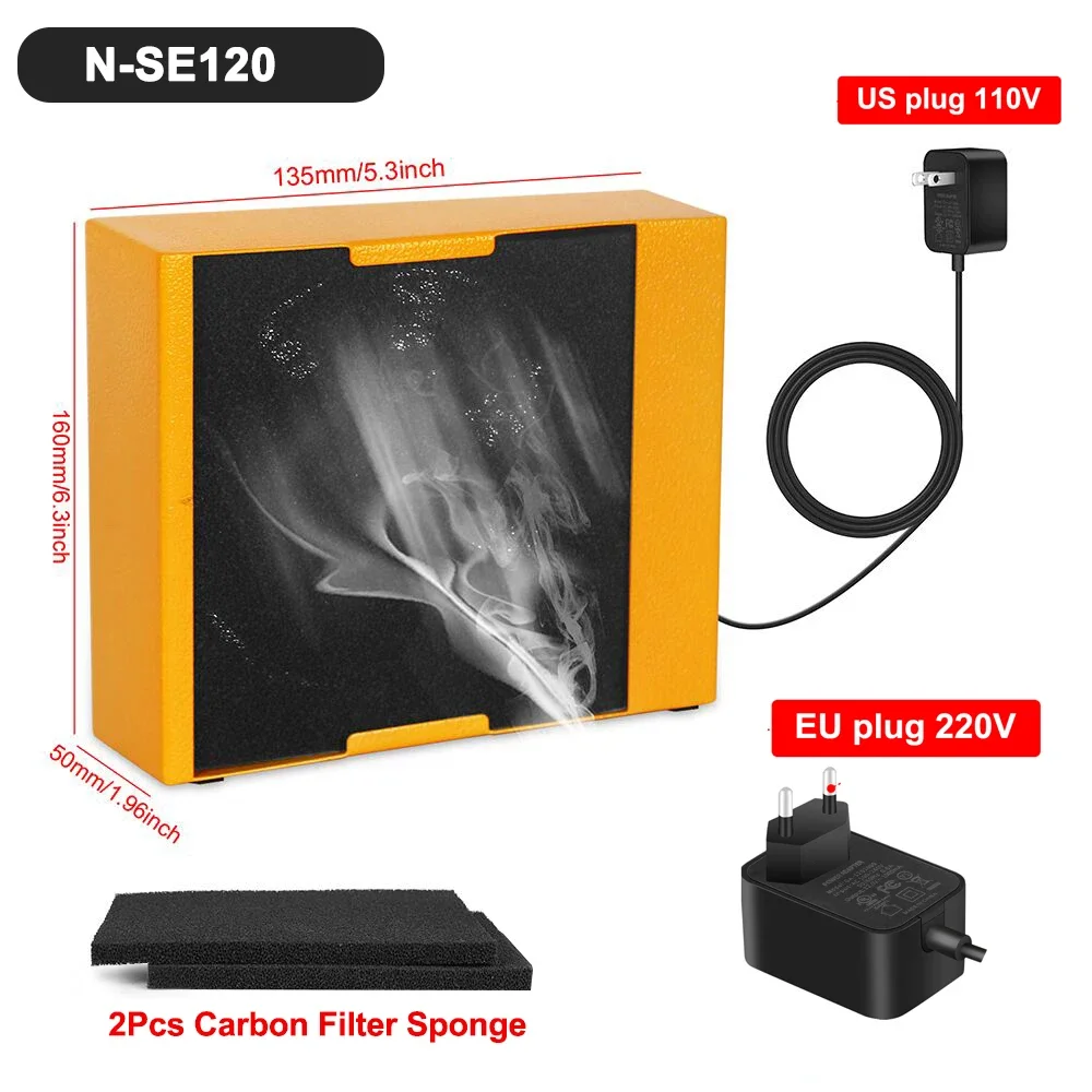 1.Low Noise Fan with Smoke Filter: ESD safe smoke Extractor fan with 0.4 inch thick activated carbon filter can extract away the solder, flux, chemicals, gases or other hazardous substances in the solder smoke, and purified by the activated carbon filter net. Recommended filter net replacement every 4 to 5 months depending on usage.
