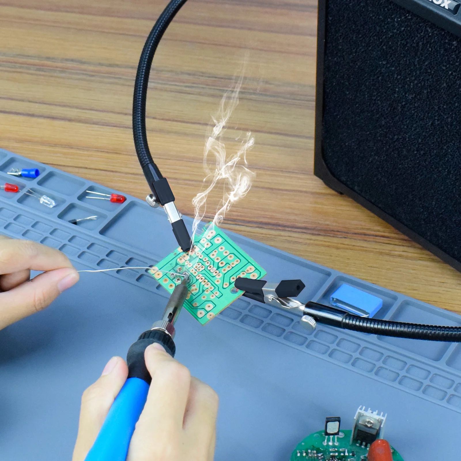 4.2Pcs flexible arm, can change position 360 degrees, easily positioned where you want them. Eliminates the frustration of traditional helping hands.
