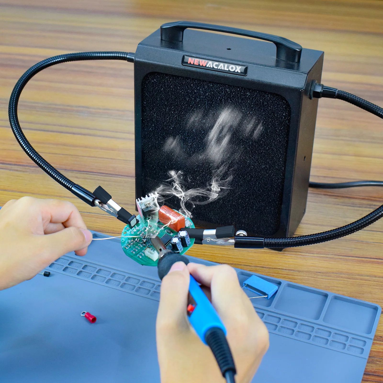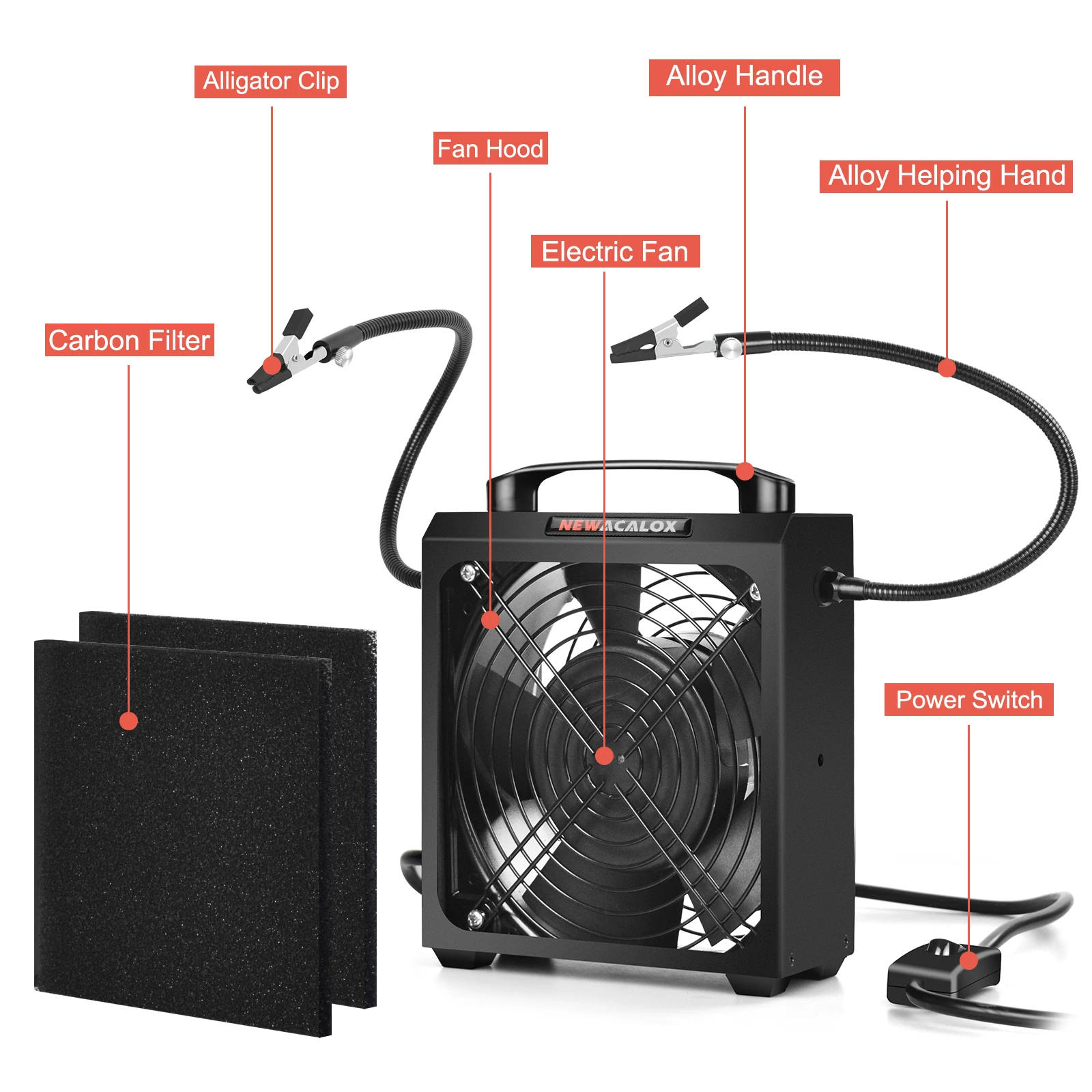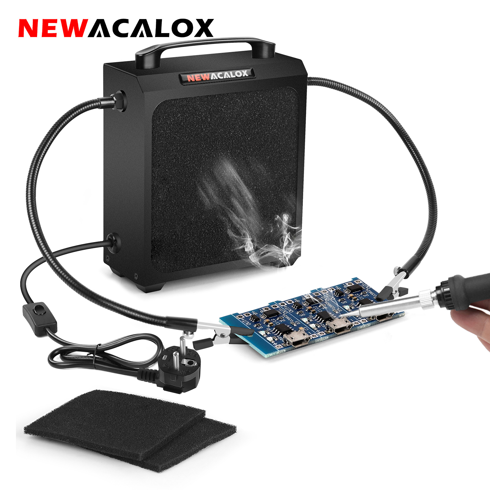 NEWACALOX EU/US 30W Solder Smoke Absorber Remover with 2Pcs Flexible Arms Helping Hands Welding DIY Working Fan for Soldering