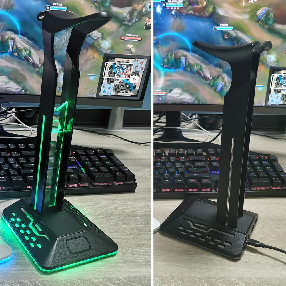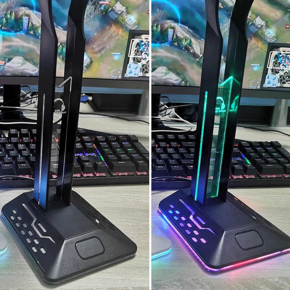 RGB Headphone Holder Rack 6 Monochrome Modes Gamer Headset Display Stand Desktop Laptop PC Gaming Accessories with Type-C Input Dual USB 2.0 Output ports