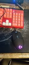 I did not take photo on, but it is excellent, very soft, it has several colors when connected, the buttons are a little noisy, but in general it is excellent!