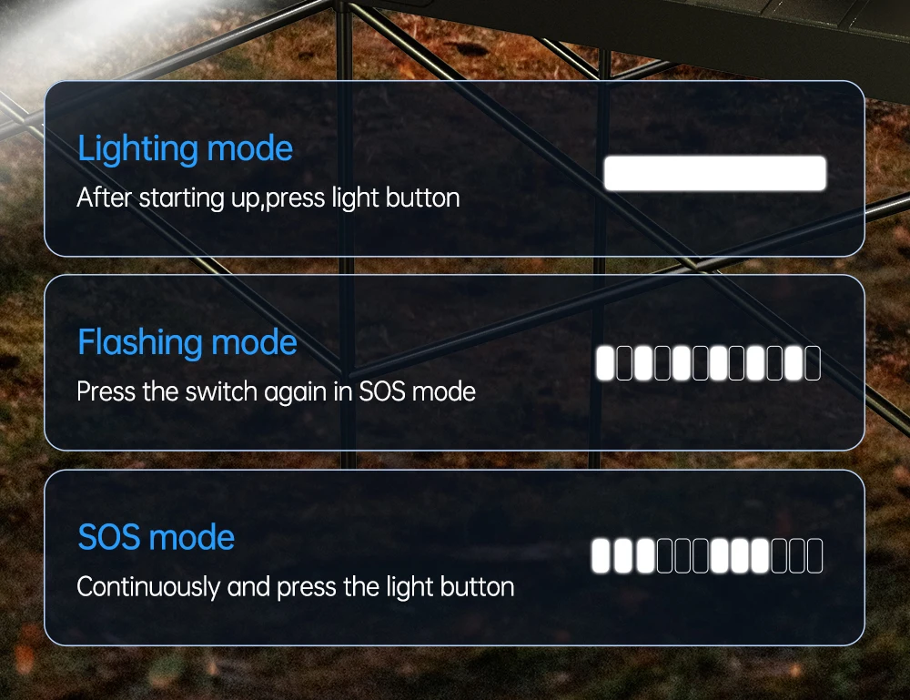 【Emergency Light】The LED lights of the jump starter with tire inflator include three modes (Normal, Strobe, SOS), which can be used in different emergencies.