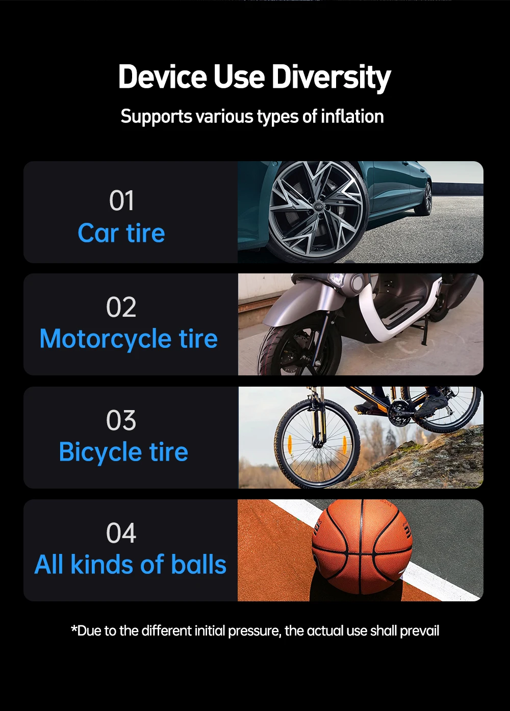 【Monitoring Tire Pressure】When you don’t know whether your tire pressure is in a normal state, you can use V5 Air Compressor to measure it, and it will show your tire pressure on the display.