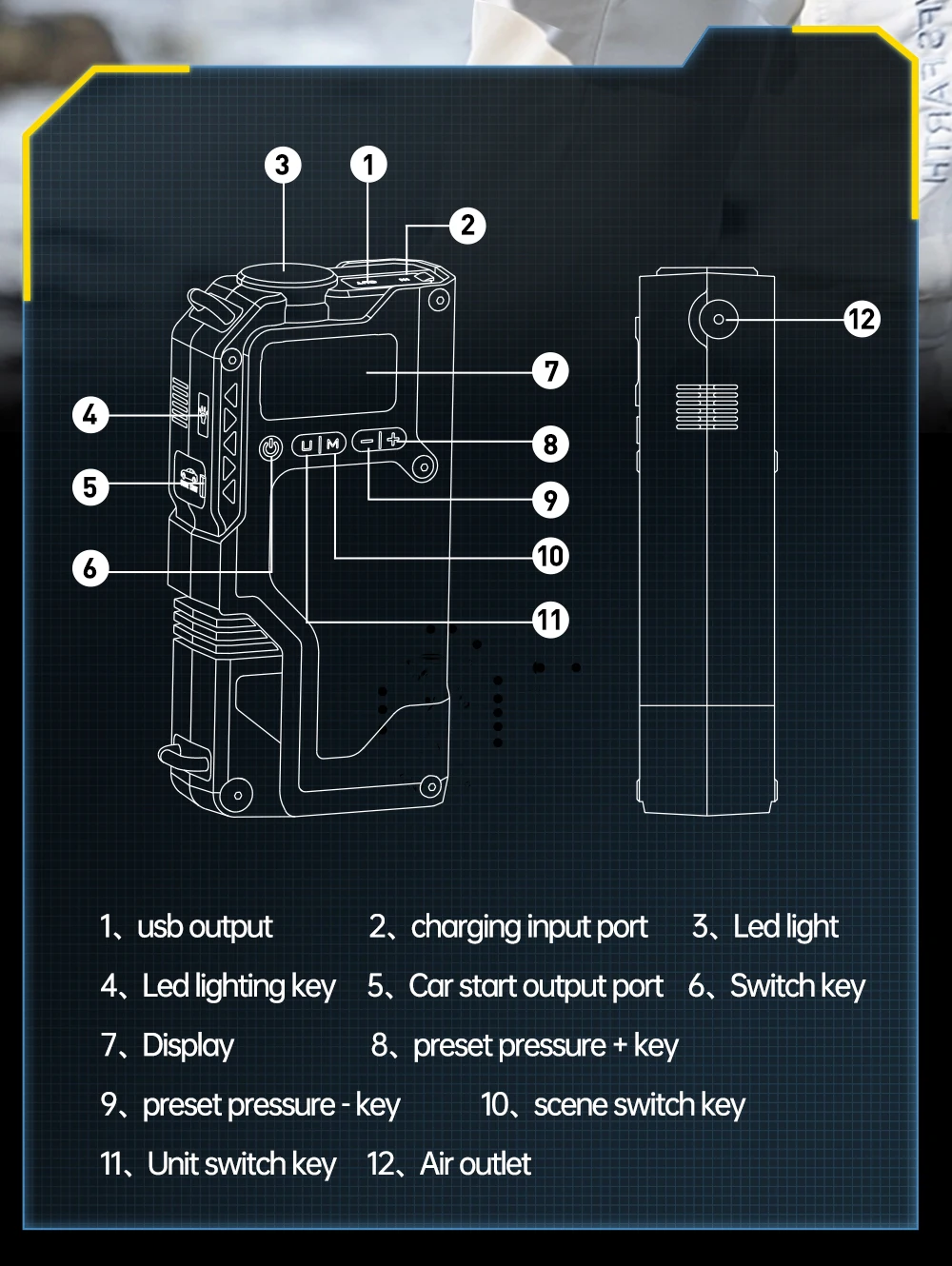 【Portable Power Bank】Battery jump air compressor is also a portable power bank. Through the USB port, you can charge your USB devices