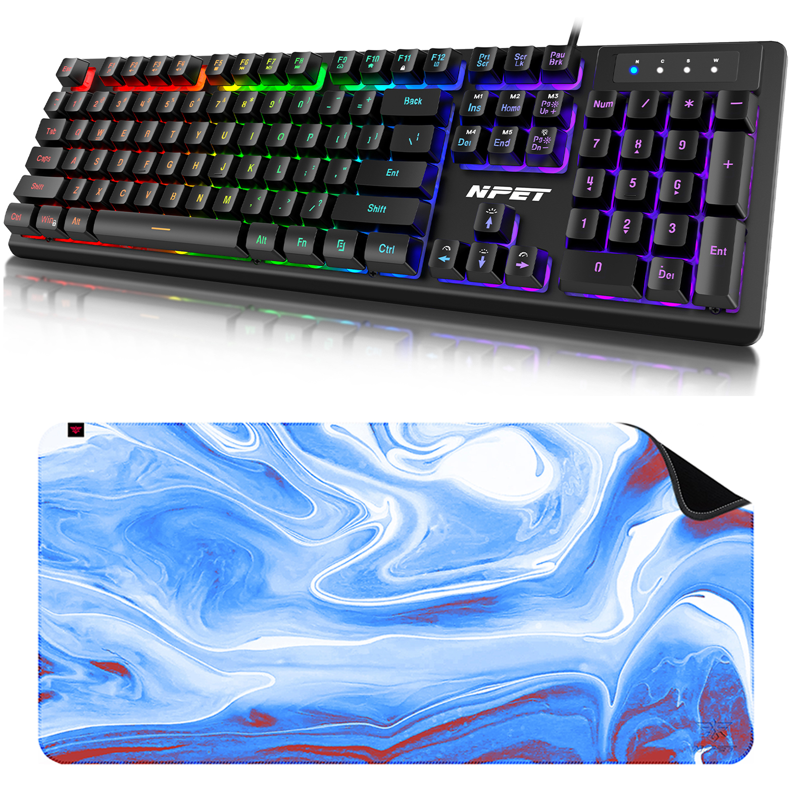 NPET RGB Gaming Keyboard and Large Mouse Pad, 12 Multimedia Keys, XXL Gaming Mouse Pad Desk Pad, Compatible with PC, Laptop