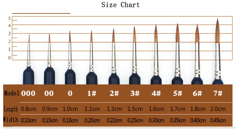 000# brush length:8mm brush width:1mm pen length:170mm