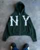 NY Letter Embroidered Trend Brand Hoodie for Men Women Y2k Harajuku Casual Streetwear Zip Up Hoodies Oversized Sweatshirt Jacket