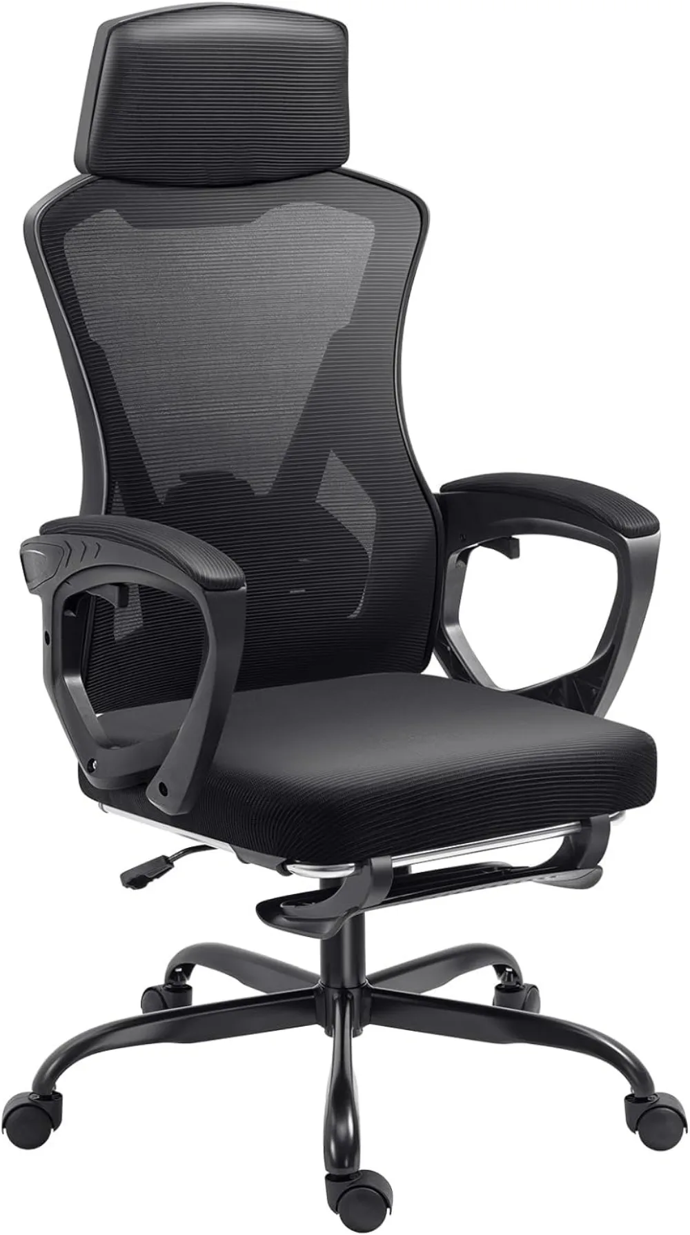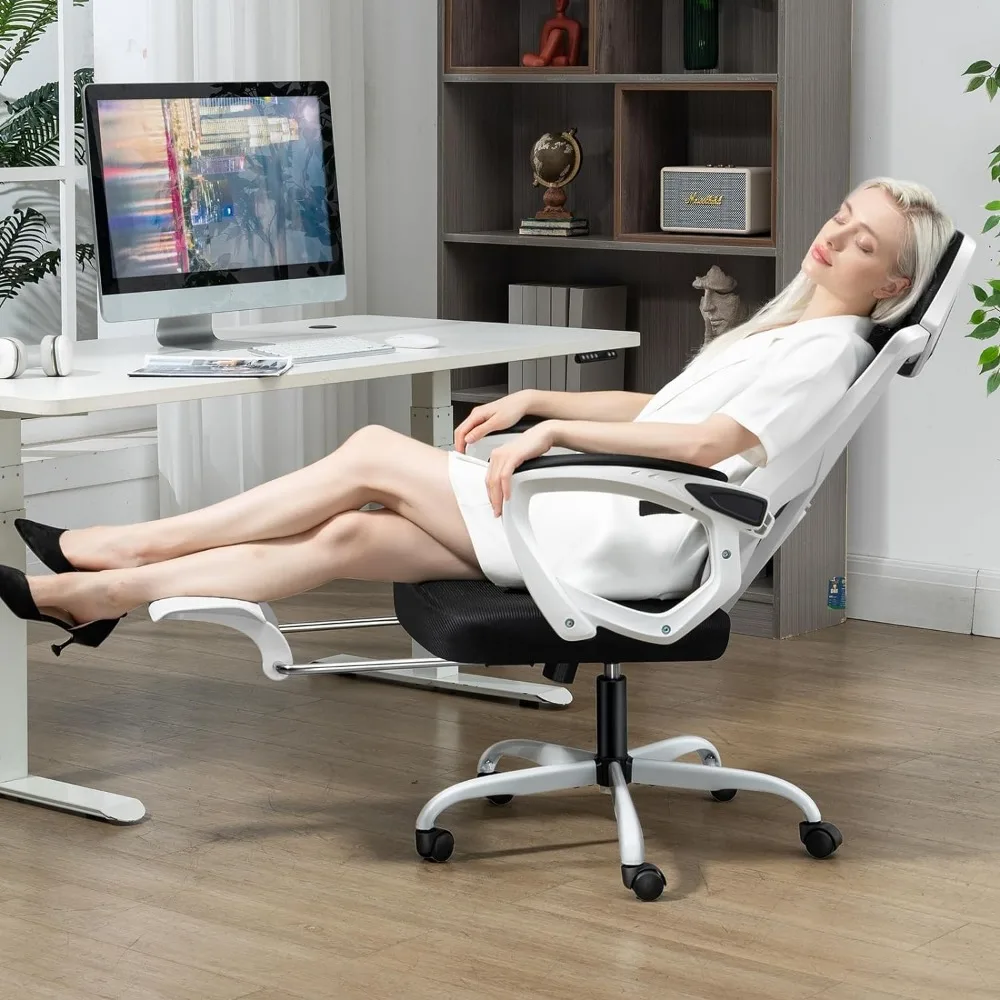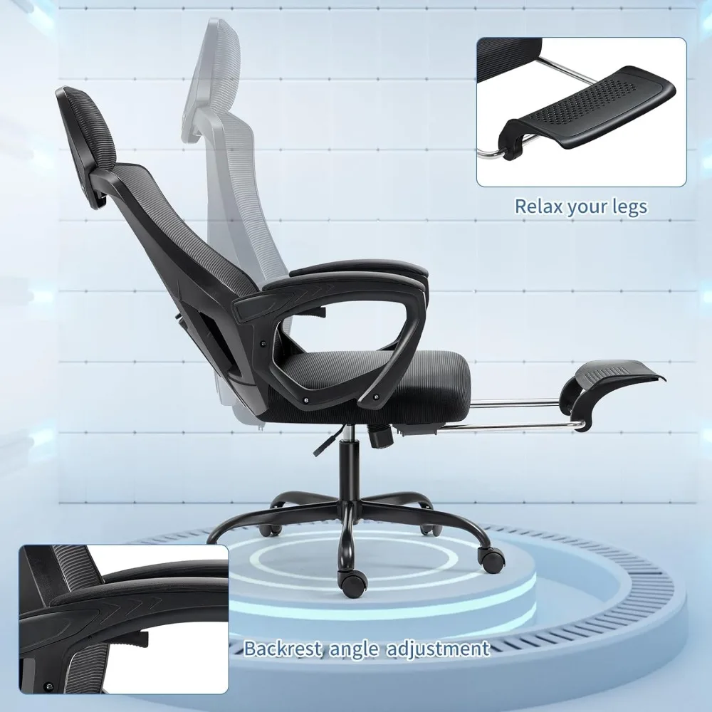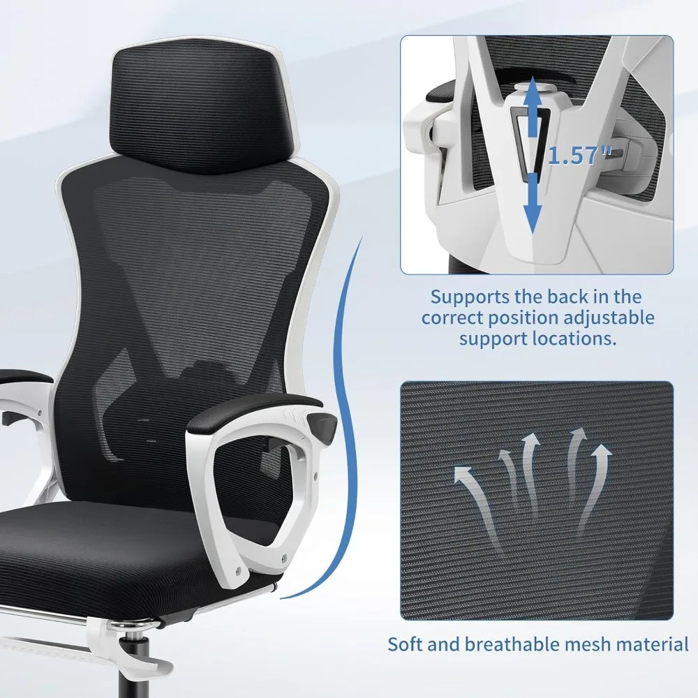 - [Ergonomic Office Chair] Our office chair is designed with ergonomic principles in mind. It features a sturdy headrest, 4-way adjustable lumbar support, 3.9 inches height adjustment range, retractable footrest, and a backrest adjustable from 90° to 135°, Press the switch located under the armrest to adjust the backrest angle, catering to your needs in various situations.