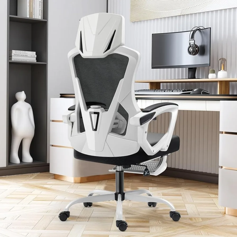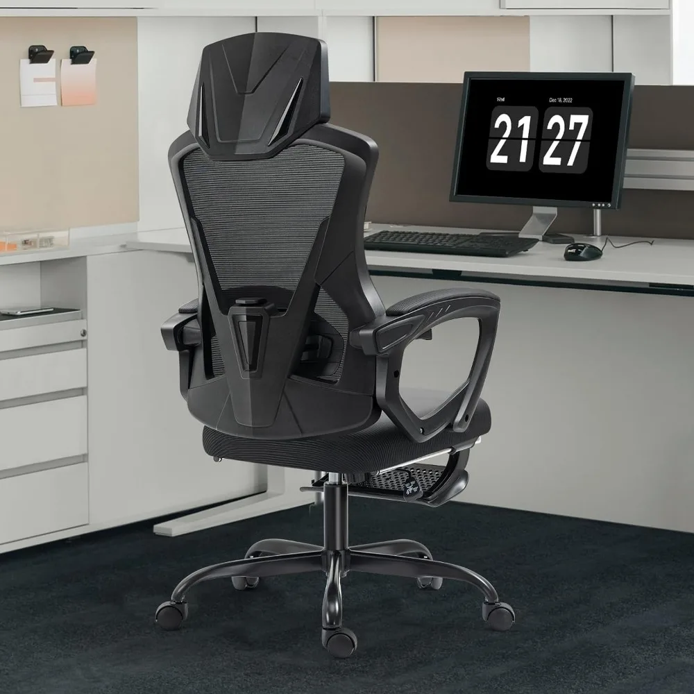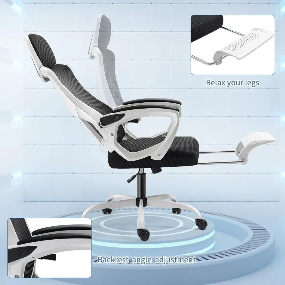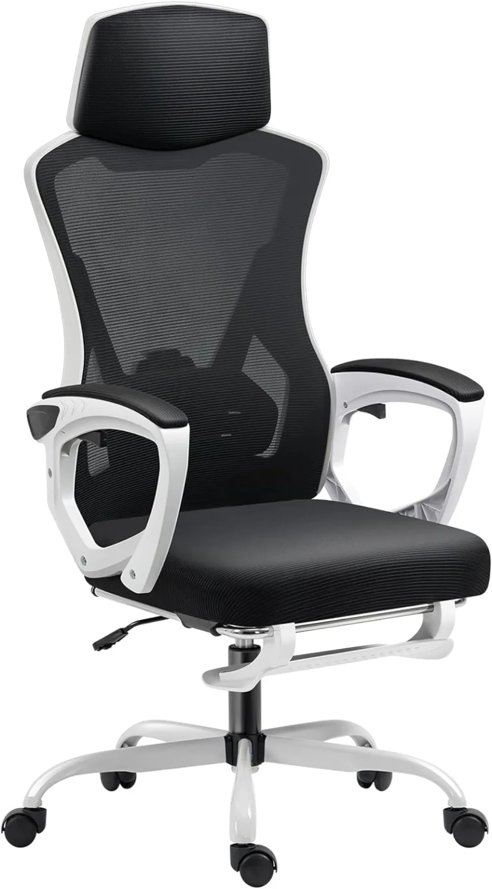 - [Ergonomic Office Chair] Our office chair is designed with ergonomic principles in mind. It features a sturdy headrest, 4-way adjustable lumbar support, 3.9 inches height adjustment range, retractable footrest, and a backrest adjustable from 90° to 135°, Press the switch located under the armrest to adjust the backrest angle, catering to your needs in various situations.