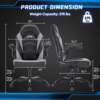 【Dimension】 – Size of back: 20 inches and 27.8 inches. Size of seat: 19.7 inches and 20 inches. Seat adjustable height: 18.9 inches to 22.9 inches. Load capacity: 275 pounds maximum weight. Rocking function: Between 90 to 120 degrees.