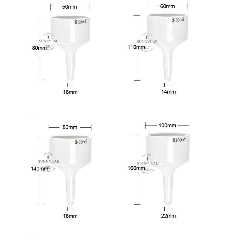 One Piece 40-150mm Porcelain Buchner funnel Laboratory Filtration Filter, Coors filtering crucible for bitumens In Laboaratoy