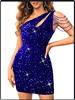 One Shoulder Cutout Allover Sequin Party Dress Women Sleeveless High Waist Evening Mini Dress Slim Sequined Solid Color