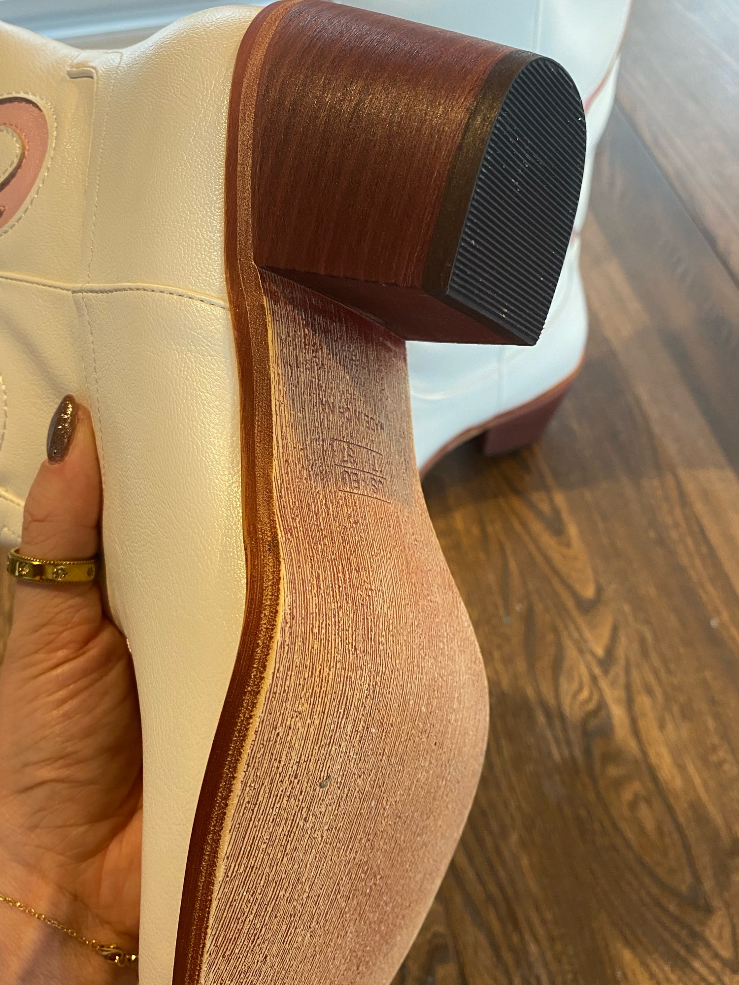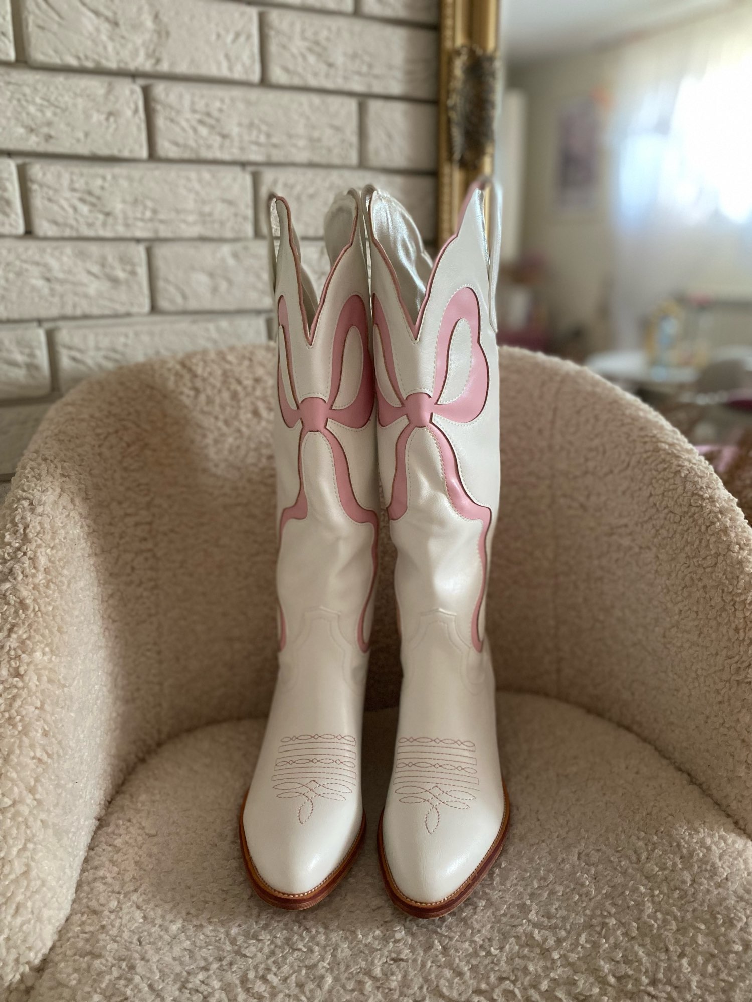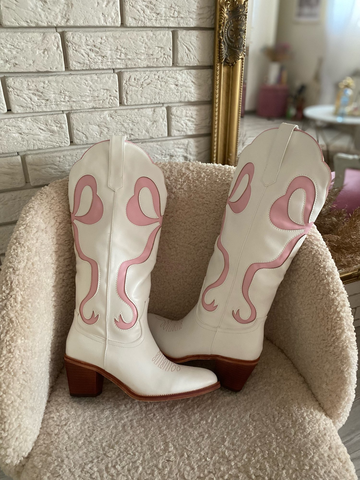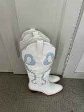 Beautiful cowboy boots, I'm very pleased. The shoes are glamorous and pay attention. The shoes are great made, with attention to every detail. Size according to the dimensions table. I recommend🎀🎀