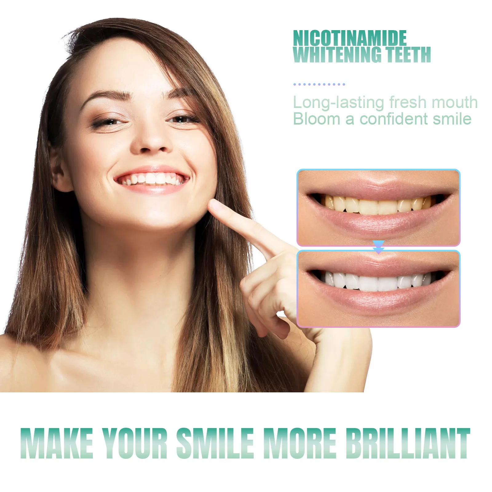 1. Brighten your smile with niacinamide ingredients, quickly and gently break down stubborn stains caused by coffee, tea, etc