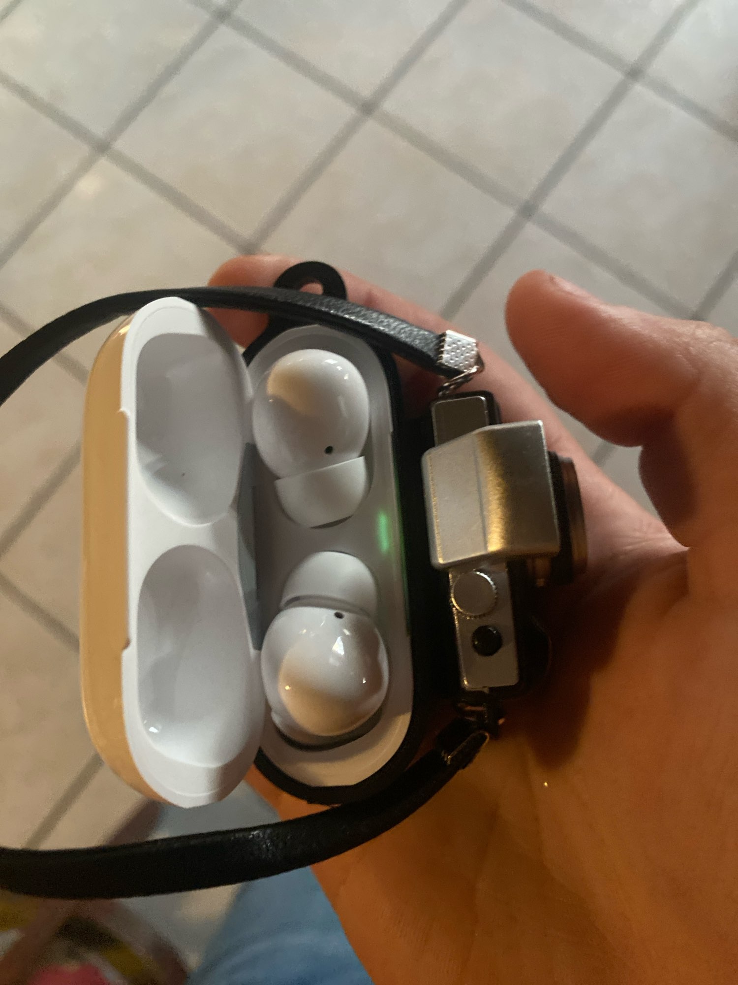 I have mine in a case but they are the real air pods you can have them up to full blast and nobody will hear, also i was not expecting it to come with charger and fully charged ,i am very satisfied!
