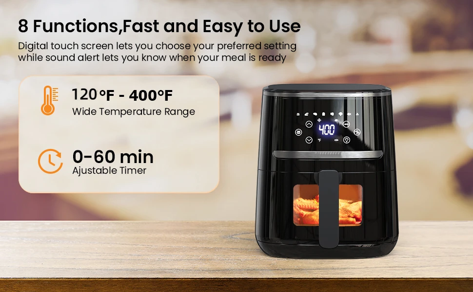 OUIO Air Fryer, 5QT Digital Air Fryer Oven Combo, 8 Cooking Presets, Visible Cooking Window, Air Fryer with Touch Screen