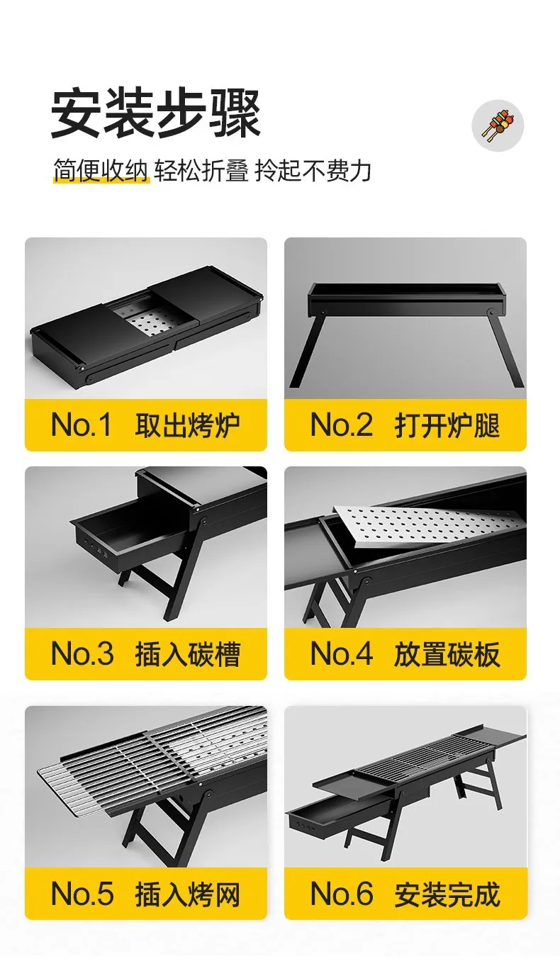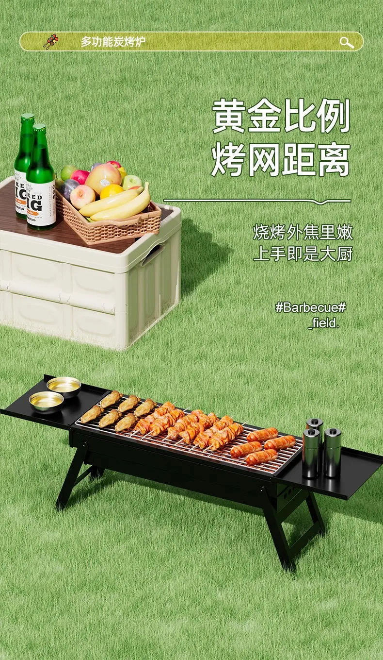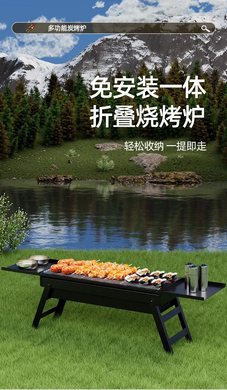 Outdoor barbecue portable courtyard outdoor charcoal portable folding barbecue grill charcoal skewers stove firepit camping oven